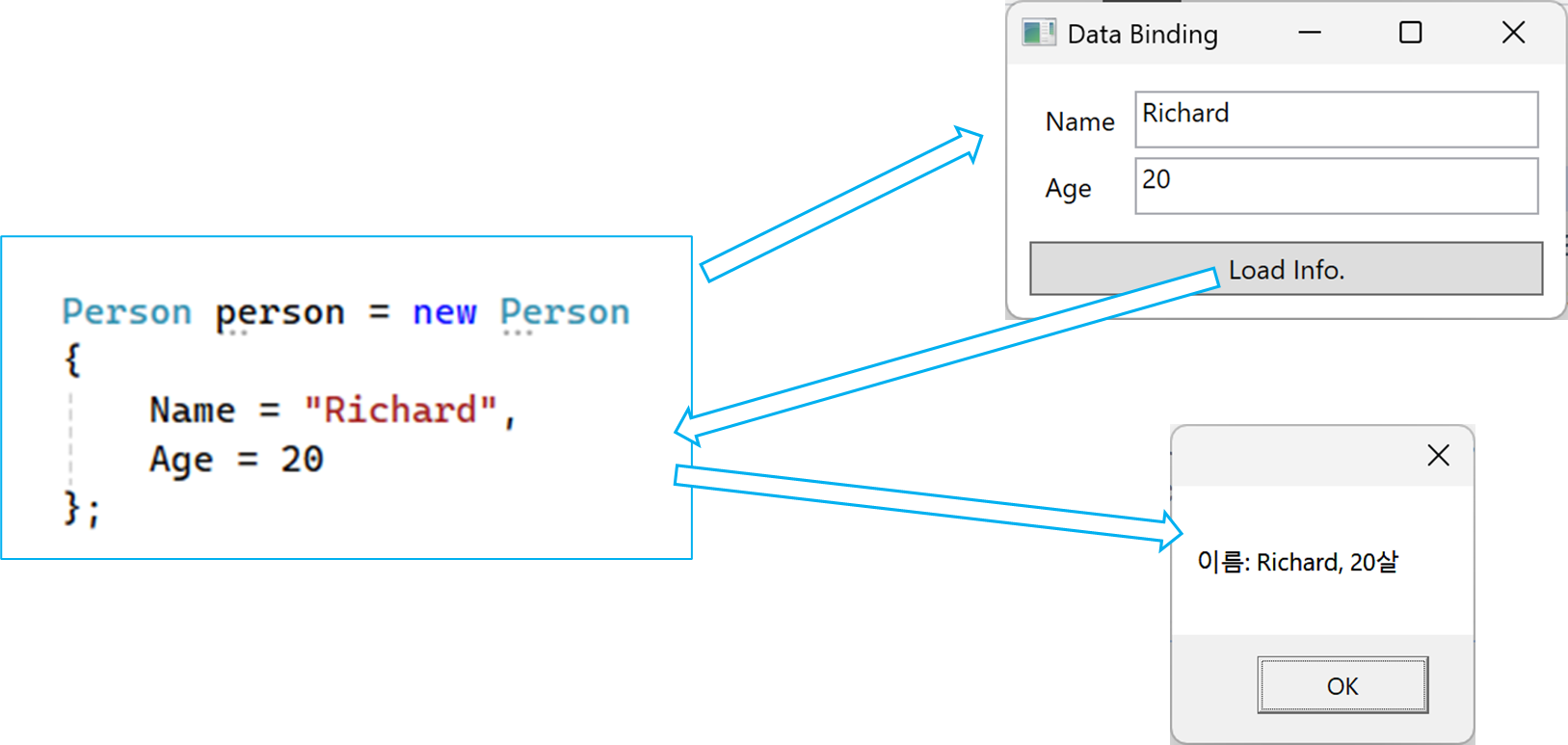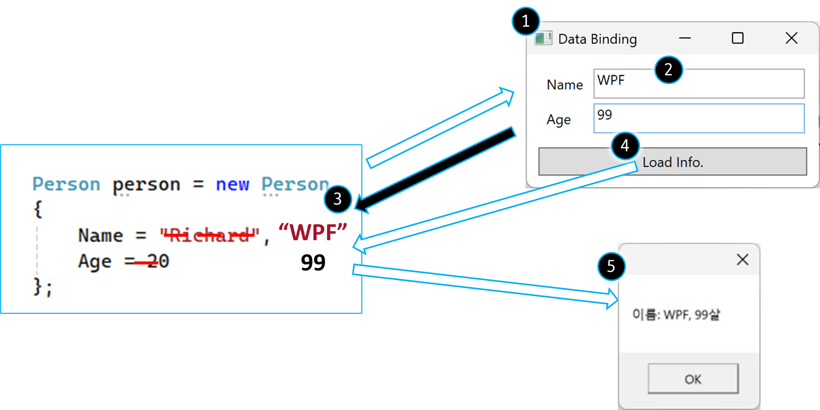 3. 코드에서 UI(메시지 박스)로 데이터 바인딩
