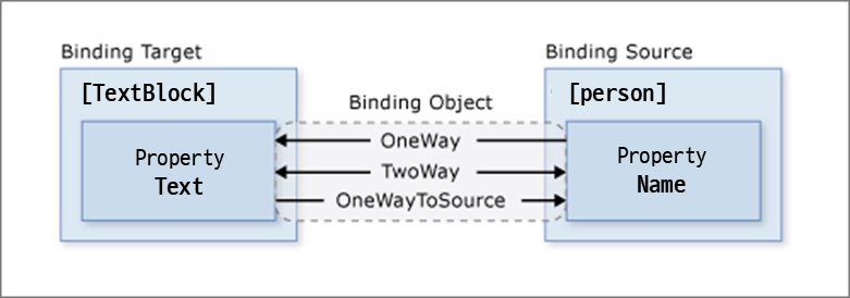 바인딩 된, 비지니스 로직에서 person 객체의 Name 프로퍼티 값도 동시에 변경됩니다.
