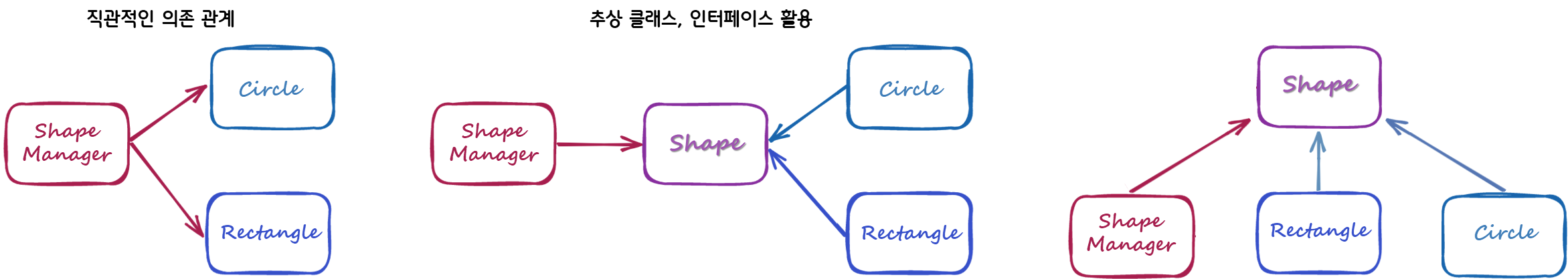 - 새로운 도형이 추가될 때 ShapeManager 클래스 수정이 필요 없음 >> OCP 준수
