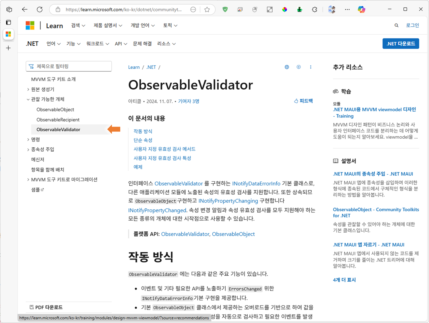 ObservableValidator는 INotifyDataErrorInfo를 구현하는 MVVM용 ViewModel 베이스 클래스입니다. 이 클래스를 상속하고 .ValidateAllProperties() 또는 .ValidateProperty() 메서드를 호출하면, 속성의 데이터 유효성 검사가 자동으로 수행되며, View에서 실시간으로 오류 메시지를 수신할 수 있습니다.