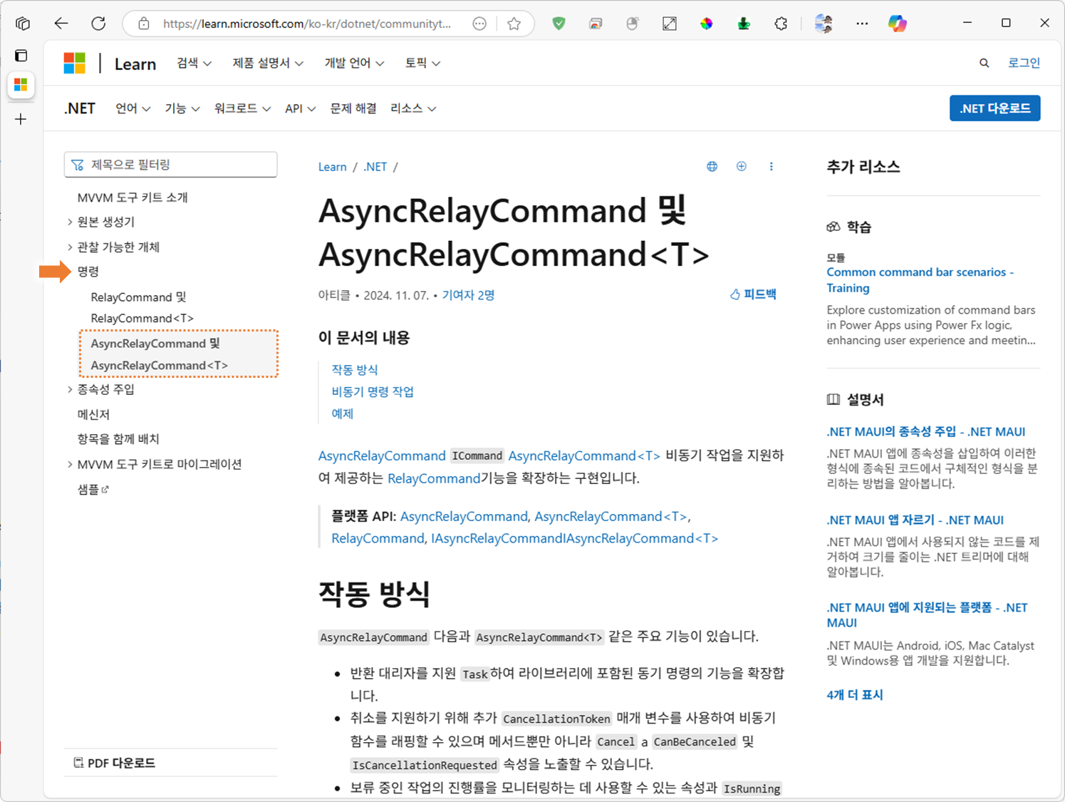 📚 Microsoft Docs: AsyncRelayCommand 및 AsyncRelayCommand<T>