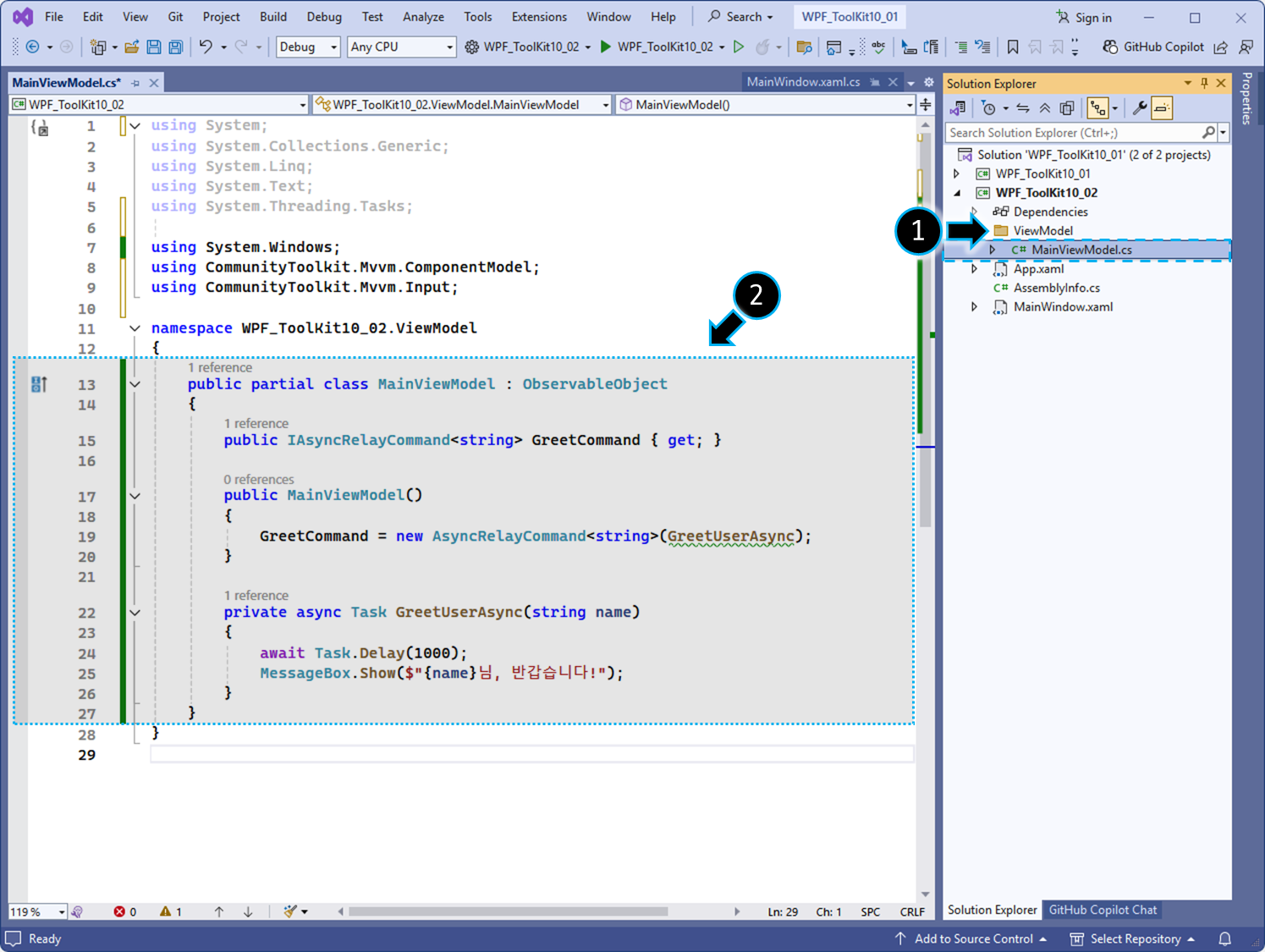 ✔️ ViewModel 클래스 만들기 (MainViewModel.cs)