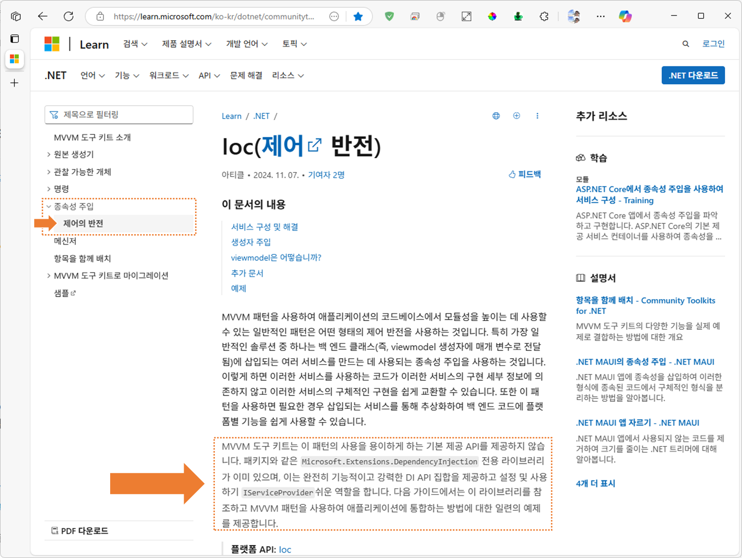- MVVM Toolkit은 내부적으로 간단한 IoC 컨테이너를 제공합니다.