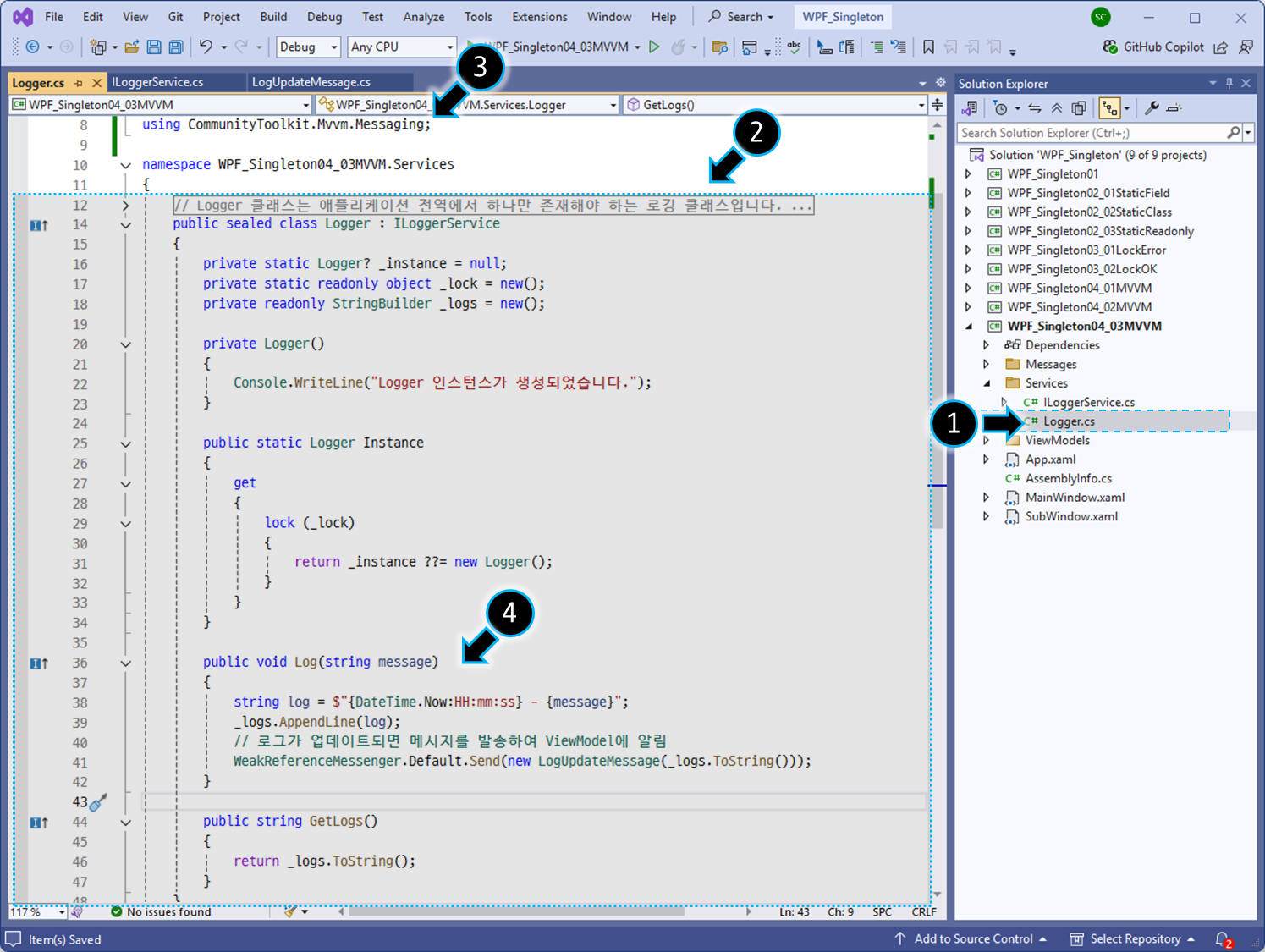 │ └── Logger.cs ← Singleton 구현