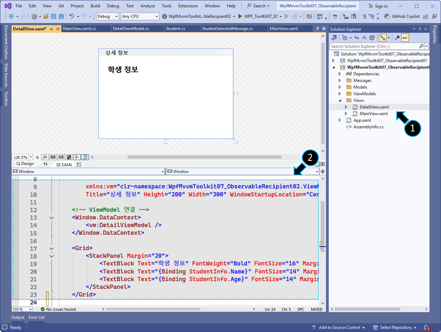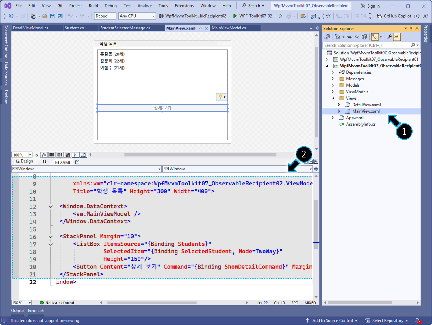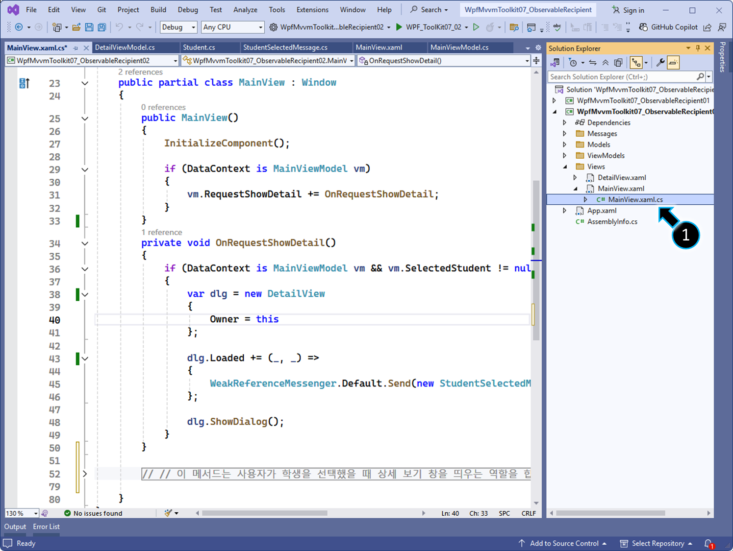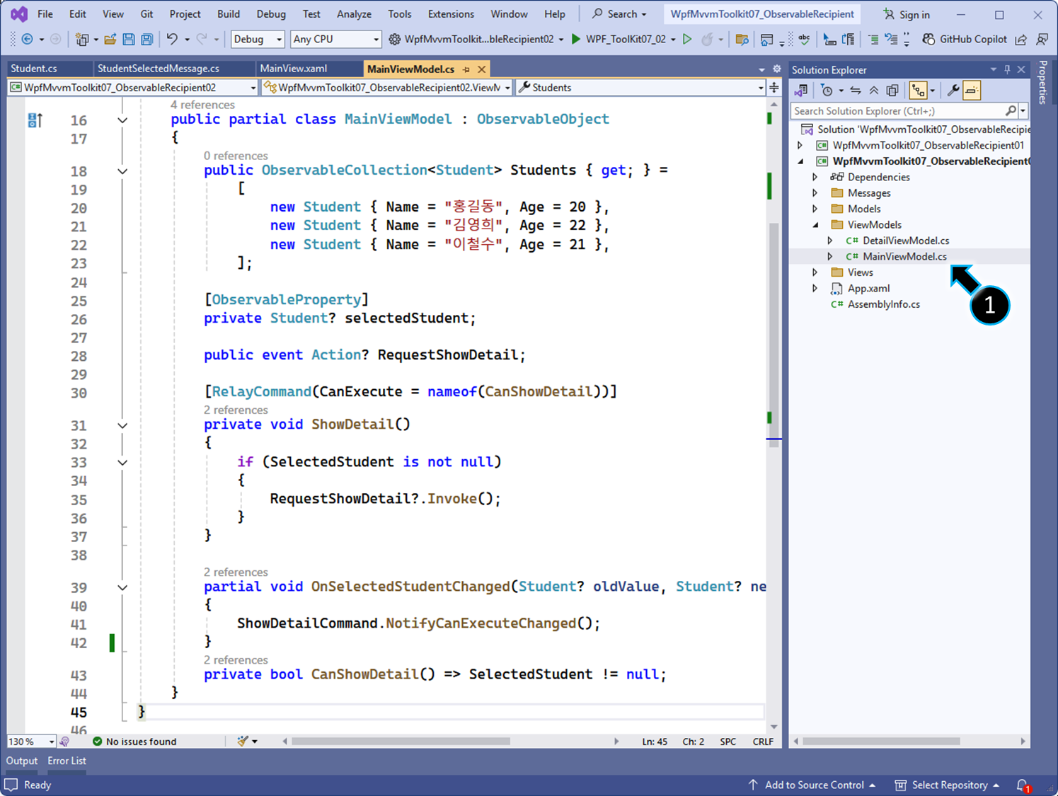// [RelayCommand]를 사용하면 ShowDetailCommand라는 ICommand 속성이 자동 생성됩니다.