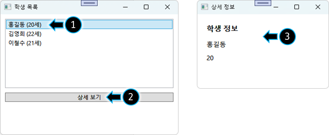 // 예를 들어, 학생 목록에서 하나의 학생(Student)을 선택했을 때,