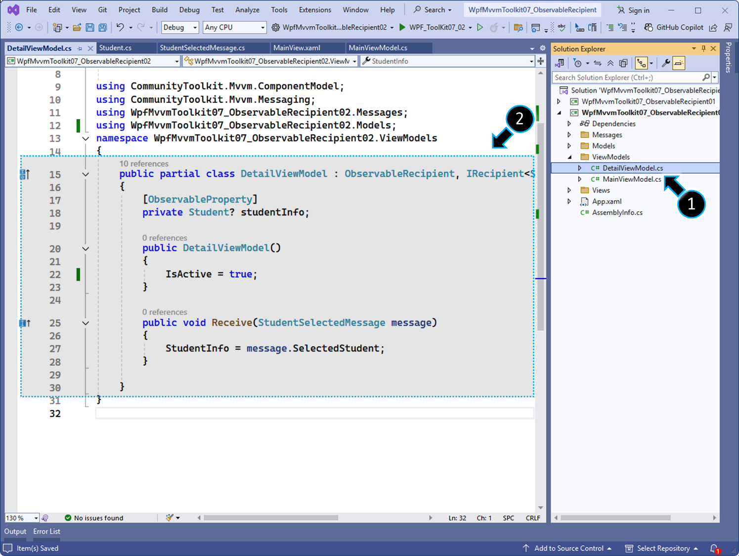 public partial class DetailViewModel : ObservableRecipient, IRecipient<StudentSelectedMessage>
