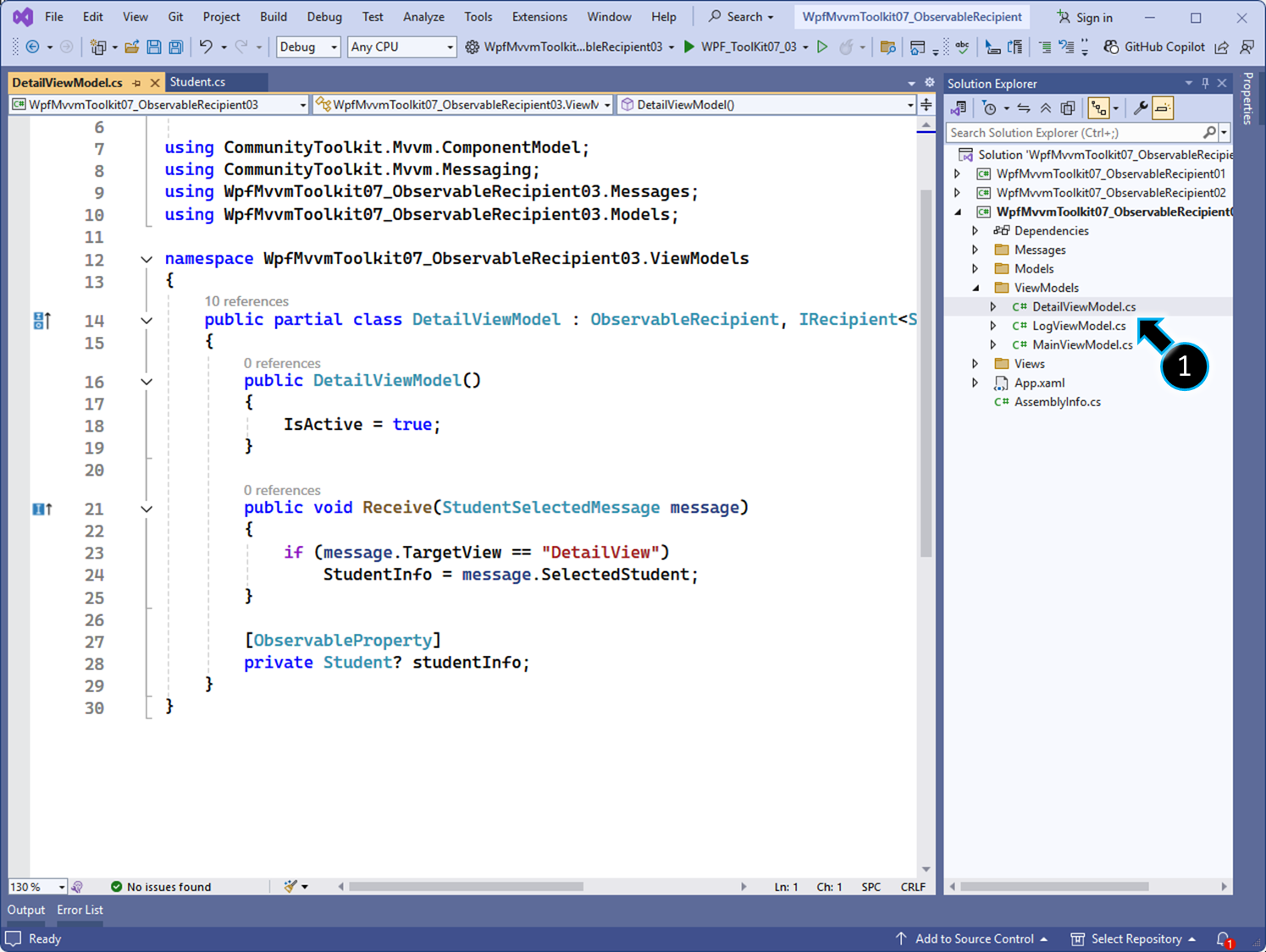 public partial class DetailViewModel : ObservableRecipient, IRecipient<StudentSelectedMessage>