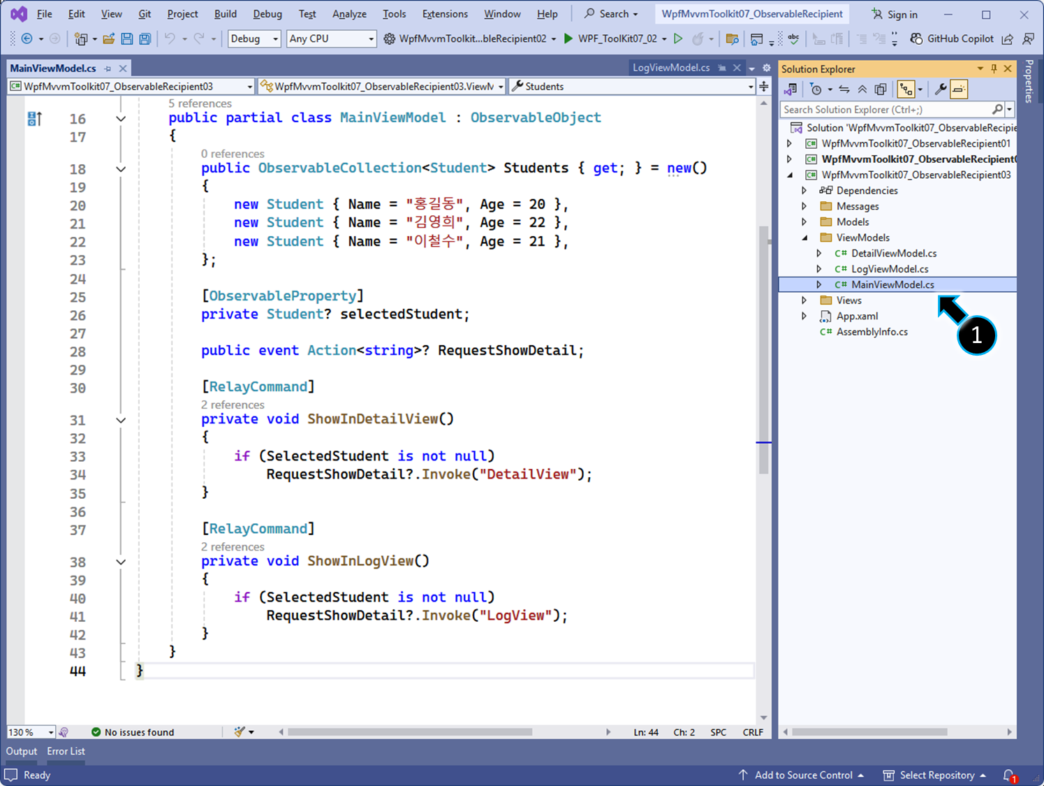 // 1. 현재 View의 DataContext가 MainViewModel인지 확인합니다.
