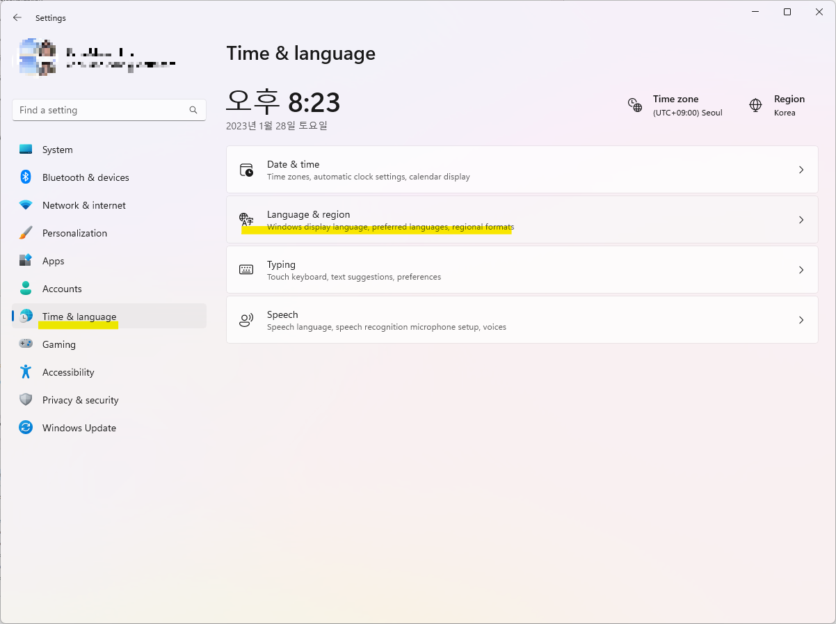 원드라이브를 사용되는 환경의 모든 시스템 언어는 동일하게 설정되어야 한다.