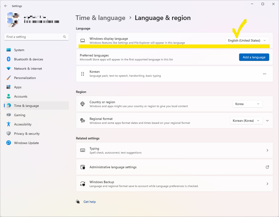 모든 환경에서 언어를 동일한 언어를 사용하도록 설정한다.