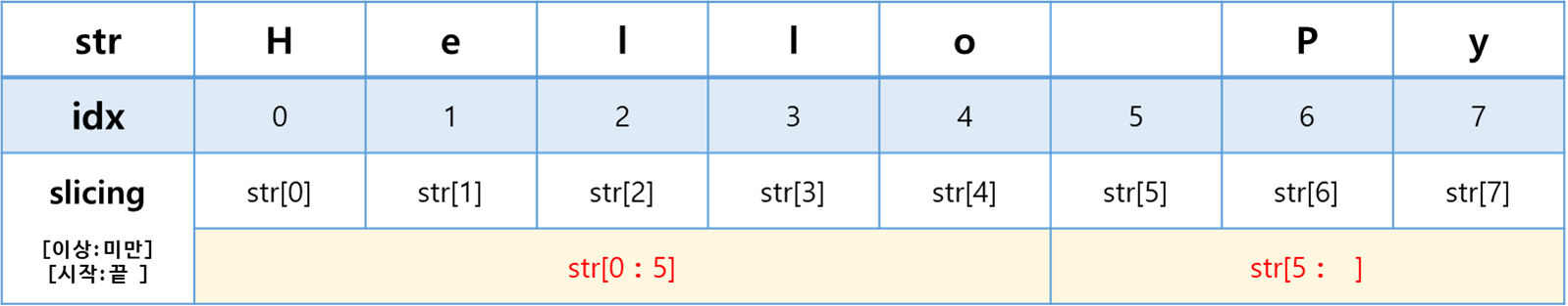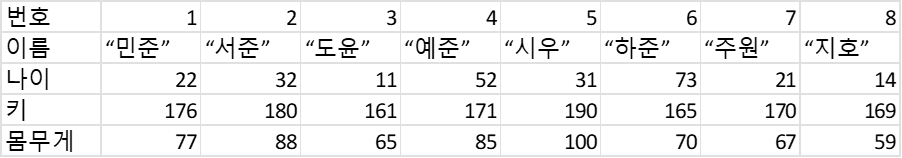 2.3 문자열 index, 리스트 index, 현실의 데이터 테이블 구조 비교