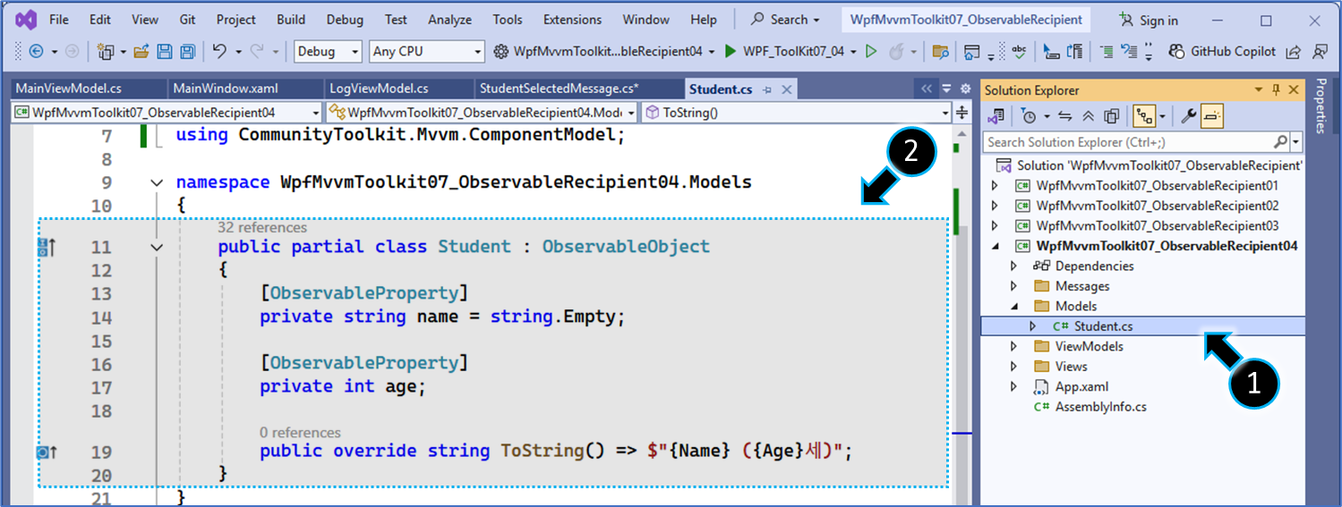 // 역시 [ObservableProperty]를 통해 자동으로 Age 프로퍼티가 생성되고, 변경 시 알림이 발생합니다.