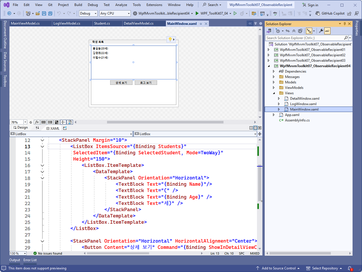 <Button Content="상세 보기" Command="{Binding ShowInDetailViewCommand}" Margin="5" Width="100"/>