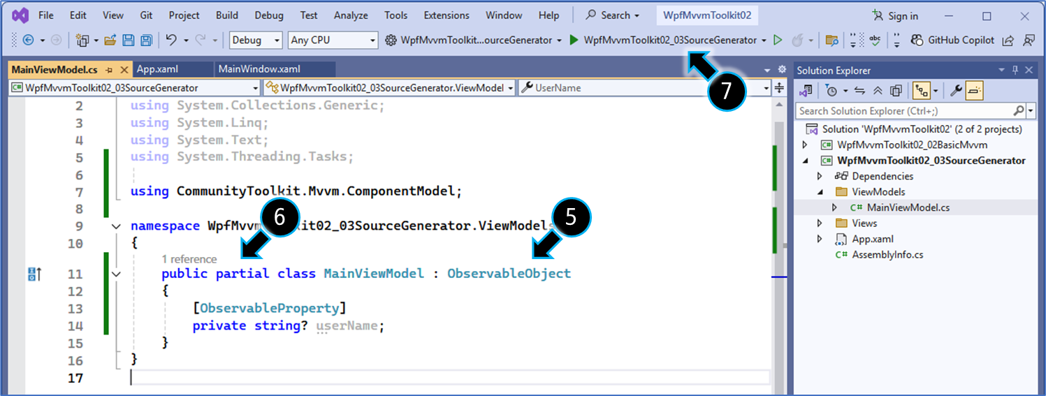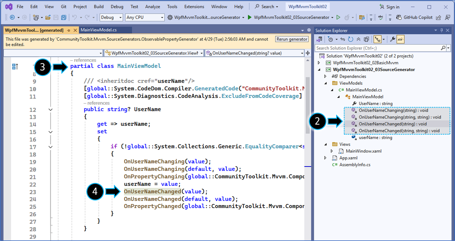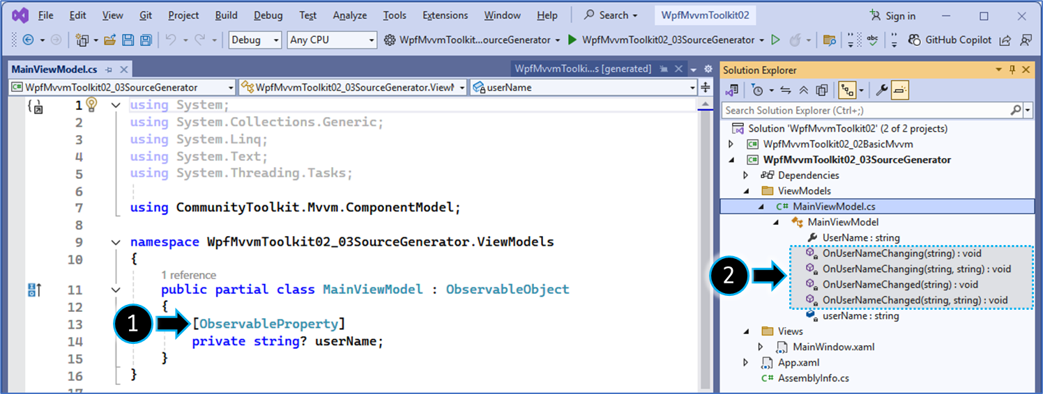 ② Source Generator는 MVVM에 필요한 소스코드를 자동 완성해 줍니다.
