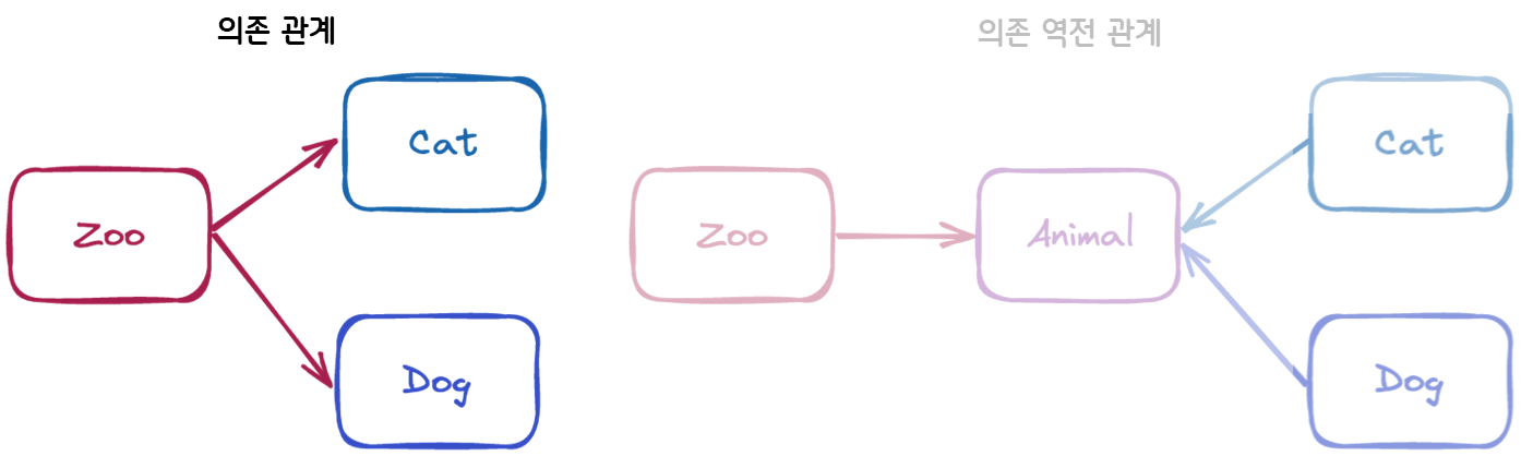 - Zoo 객체는, Cat, Dog 객체에 의존된 관계다.