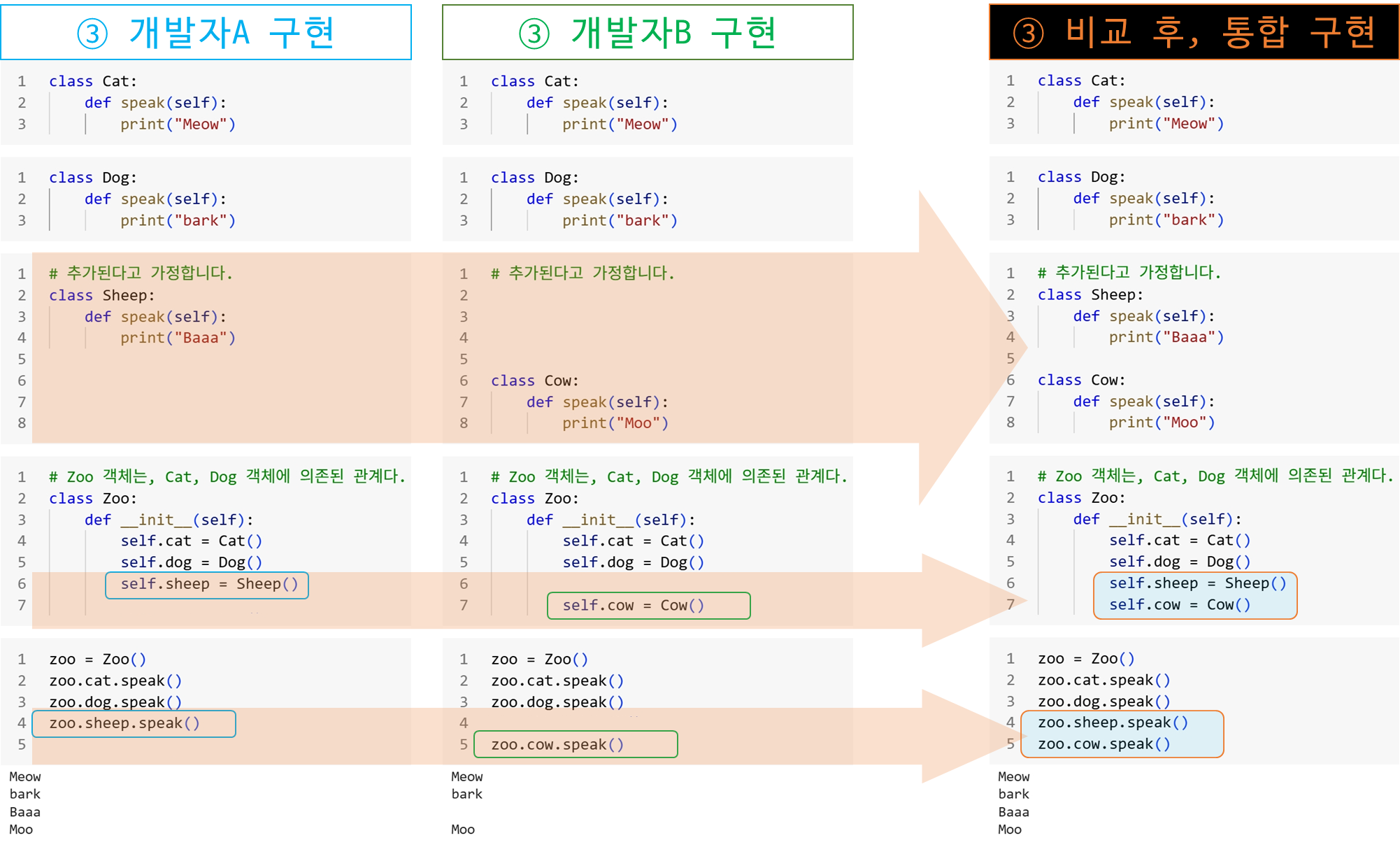 개발자A는 Sheep 객체를, 개발자B는 Cow 객체를 각각 구현한다면, 어떤 문제가 발생하는지 확인해봅시다.