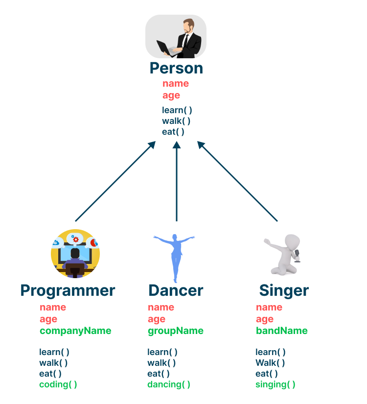 >> 객체지향에서 "is-a" 관계를 표현 → Programmer is a Person, Dancer is a Person