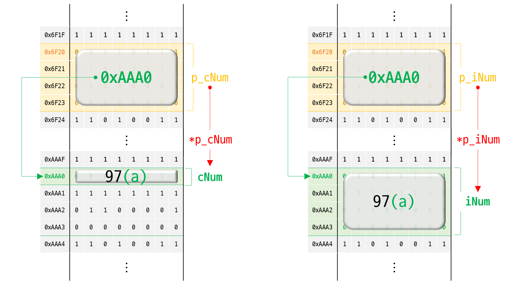 그러므로, 첫번째 바이트의 주소값만 알고 있다면, 모두 포인터 연산으로 접근 가능하다.