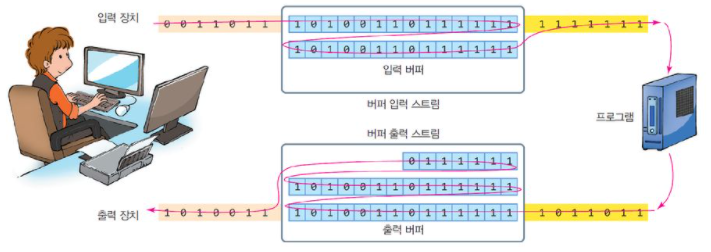 프로그램에서 출력장치(모니터 등)로 데이터가 바로 전달되지 않고 우선 출력버퍼에 데이터가 저장된다.