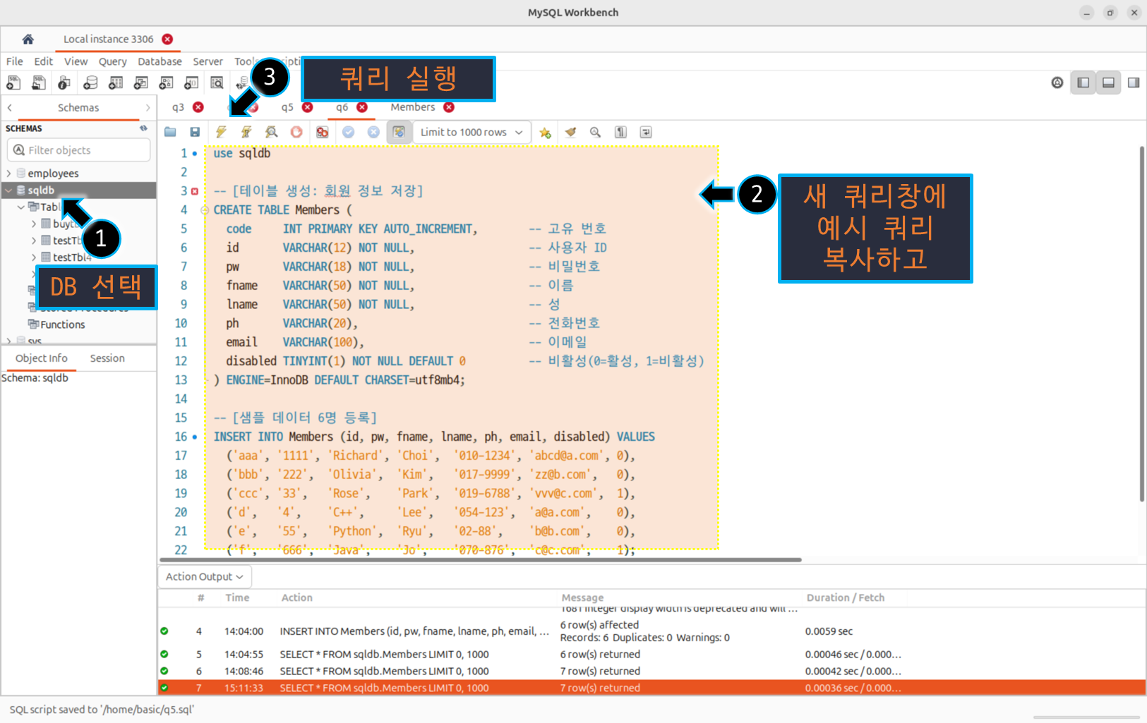 -- [샘플 데이터 6명 등록]