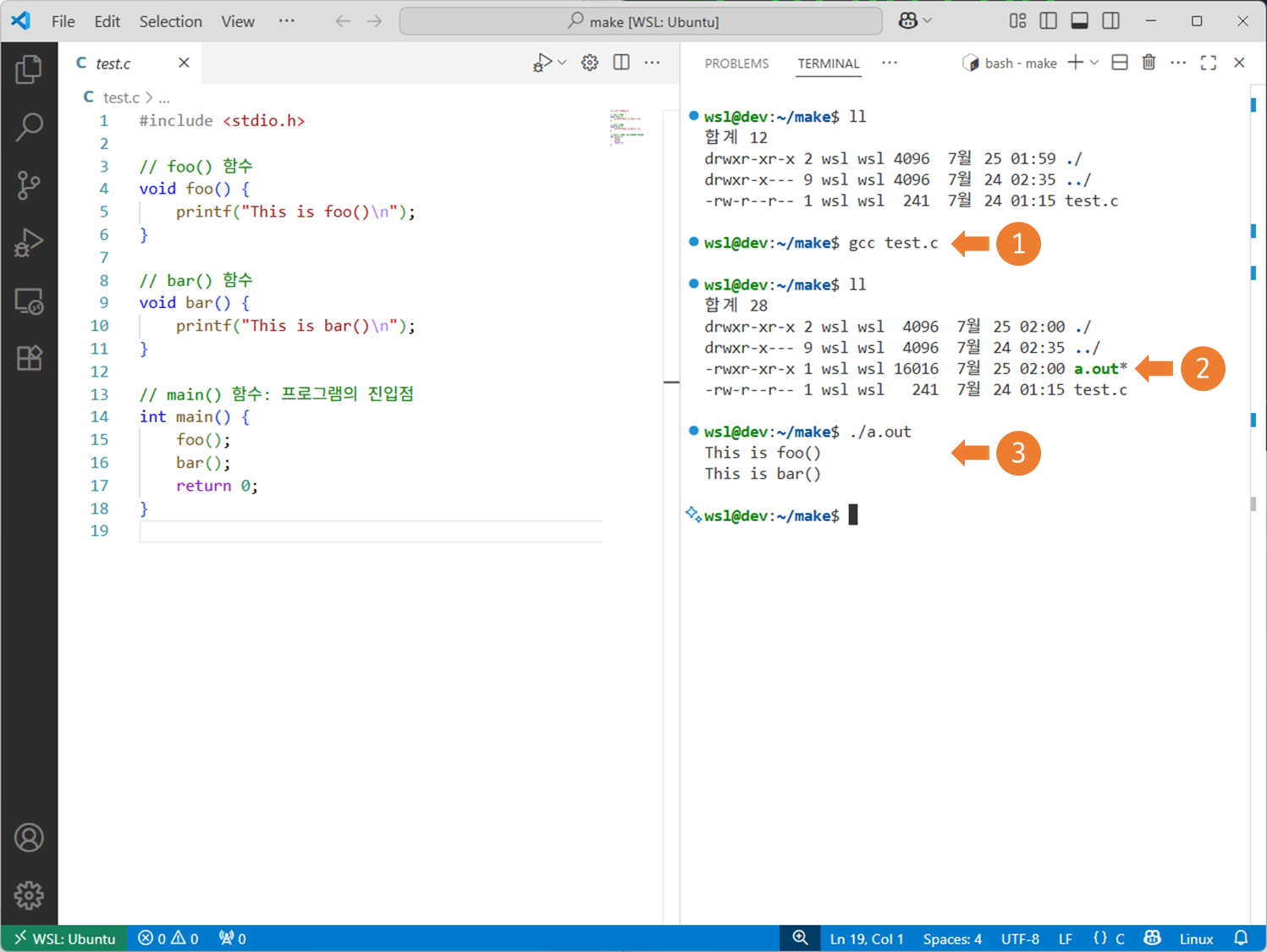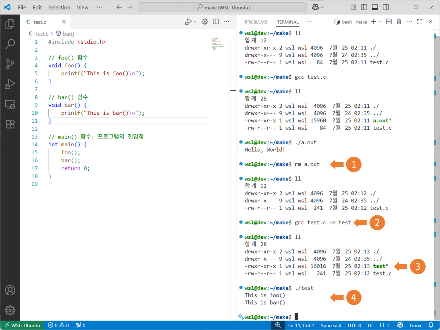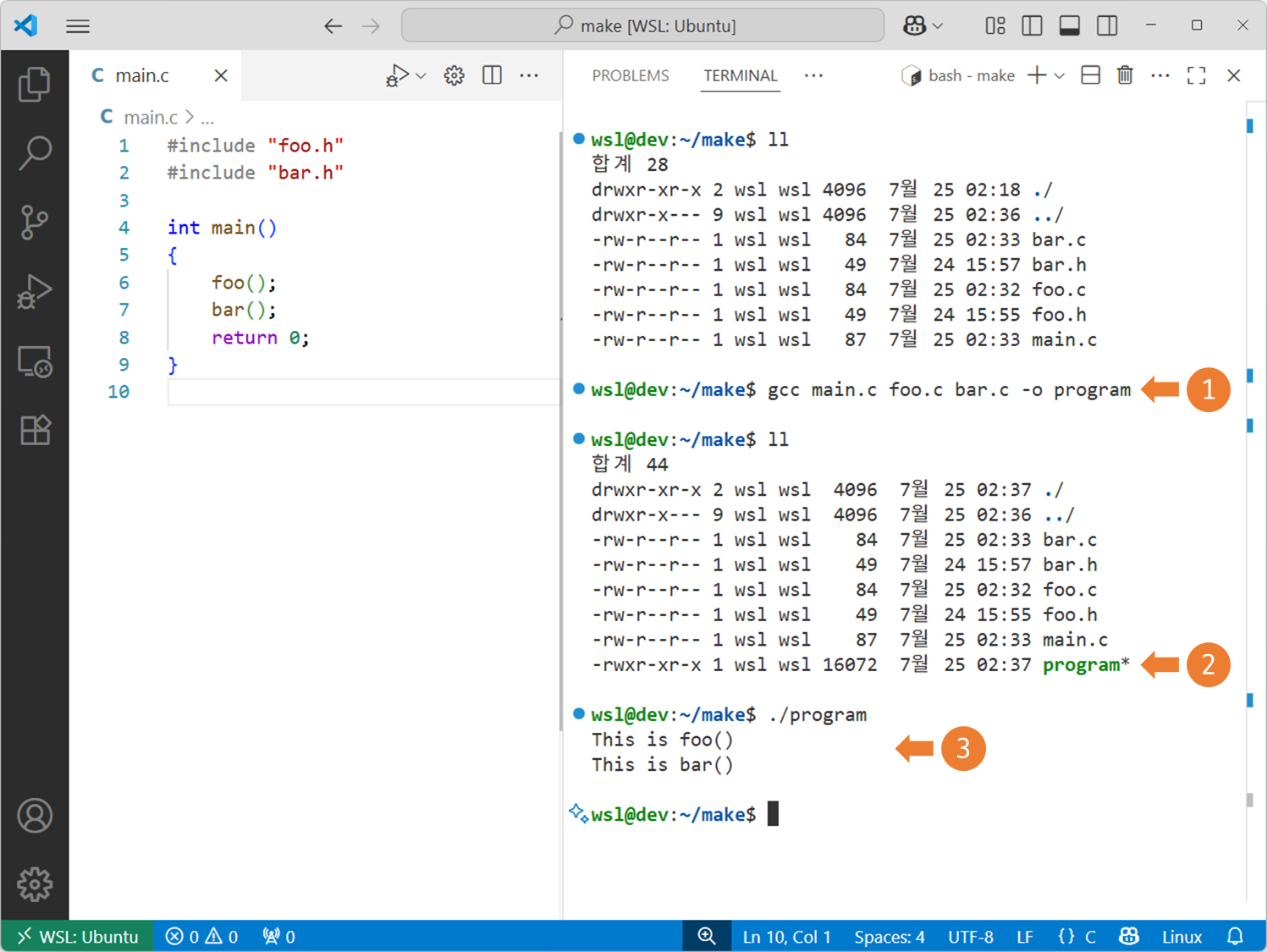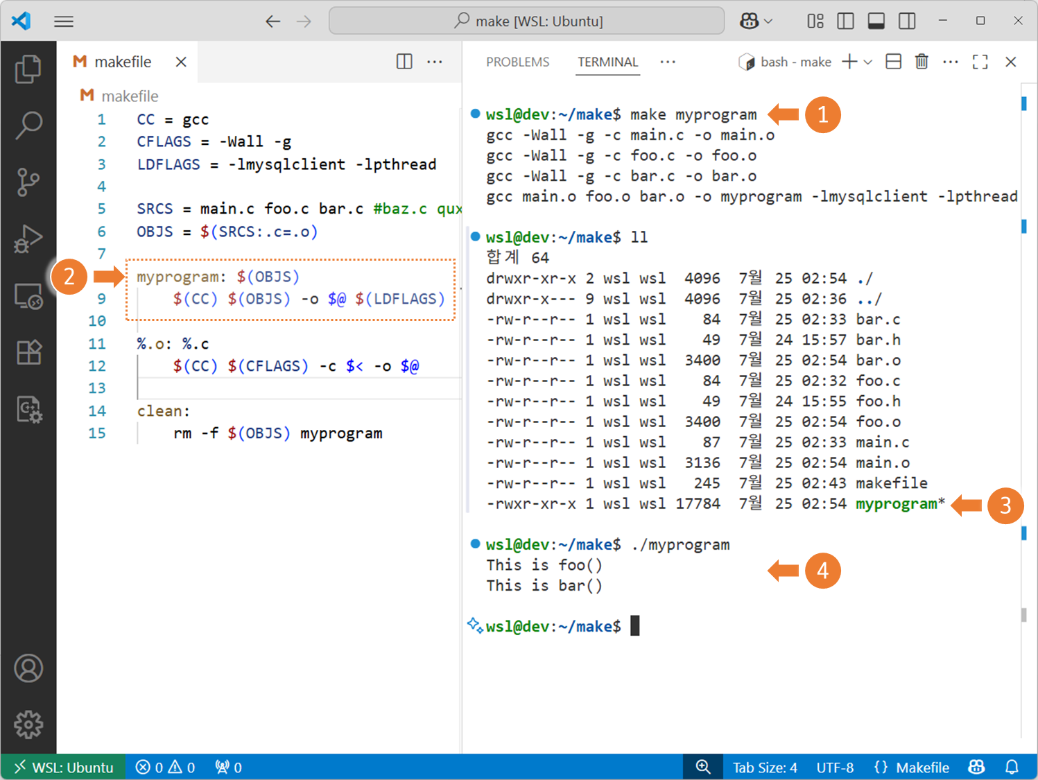 Make 프로그램은 Makefile에 지정된 방식대로 컴파일 및 링크 작업을 수행합니다.