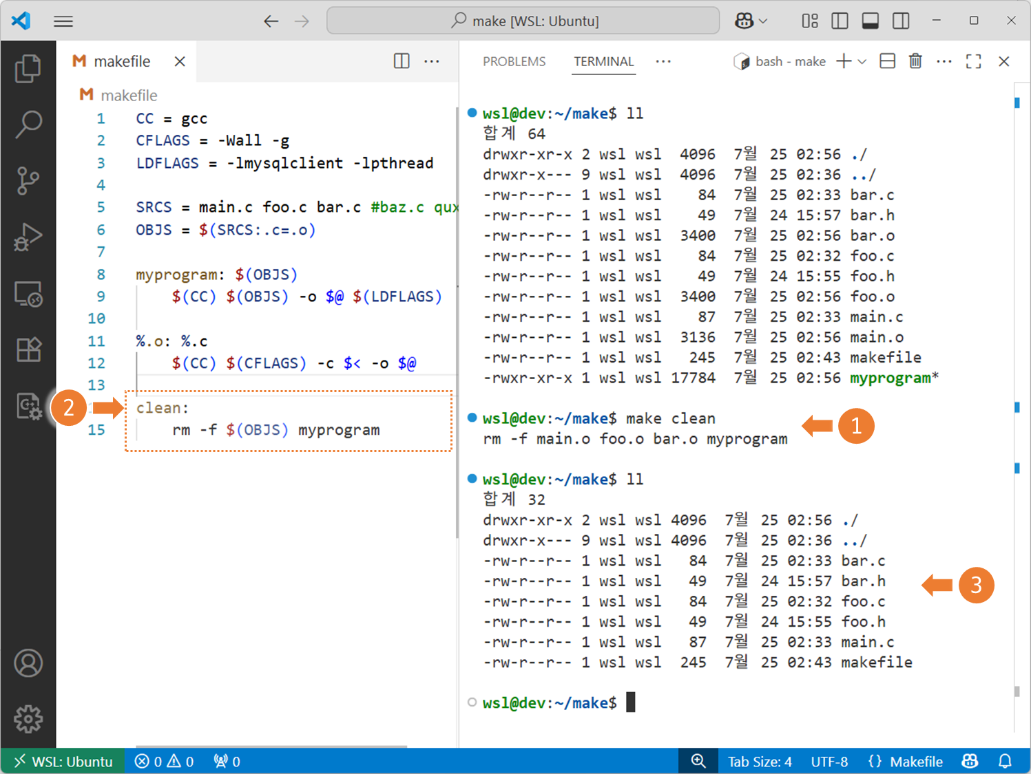 make clean # makefile 스크립트의 clean 명령 실행 (빌드 결과 삭제)