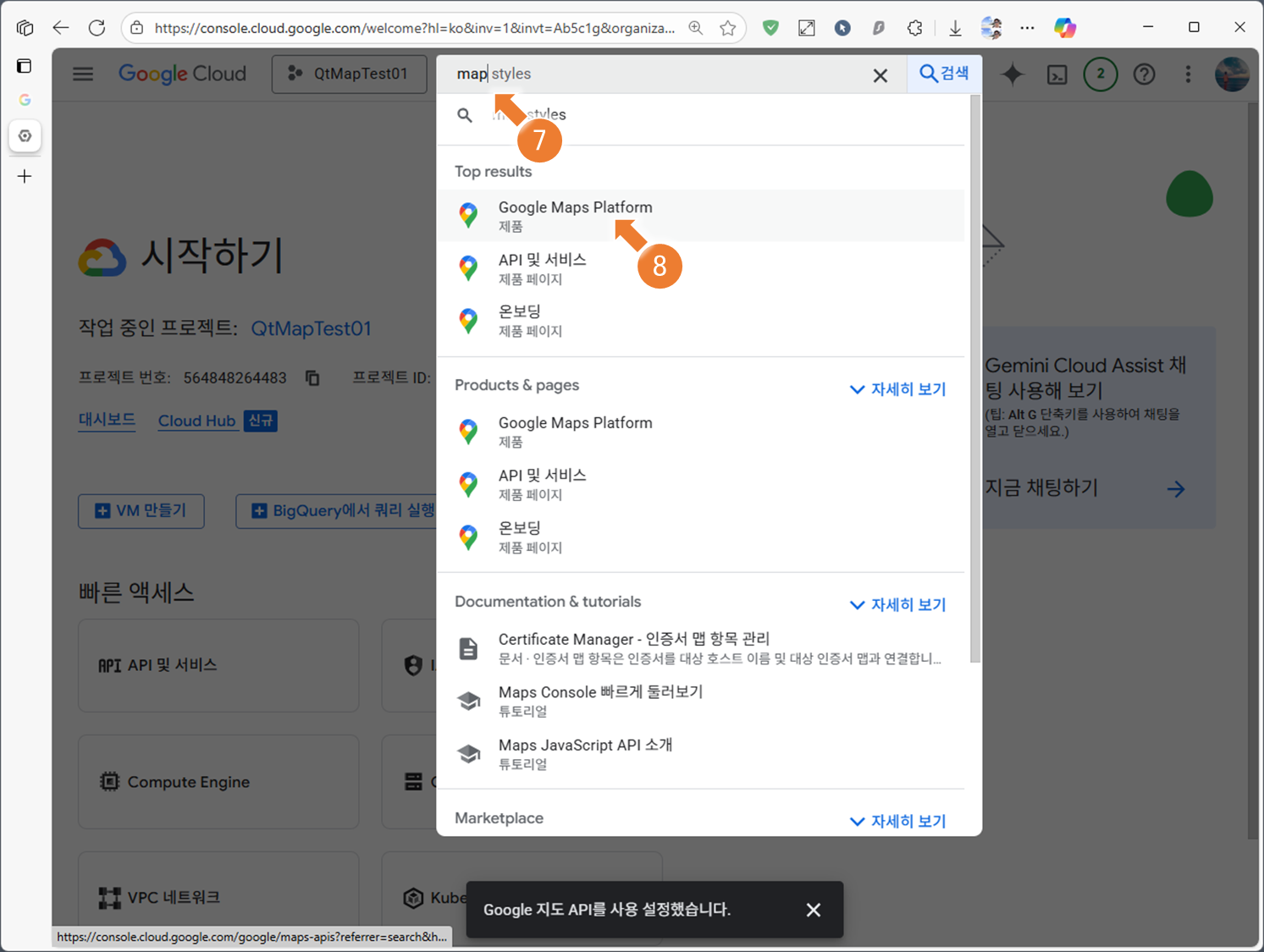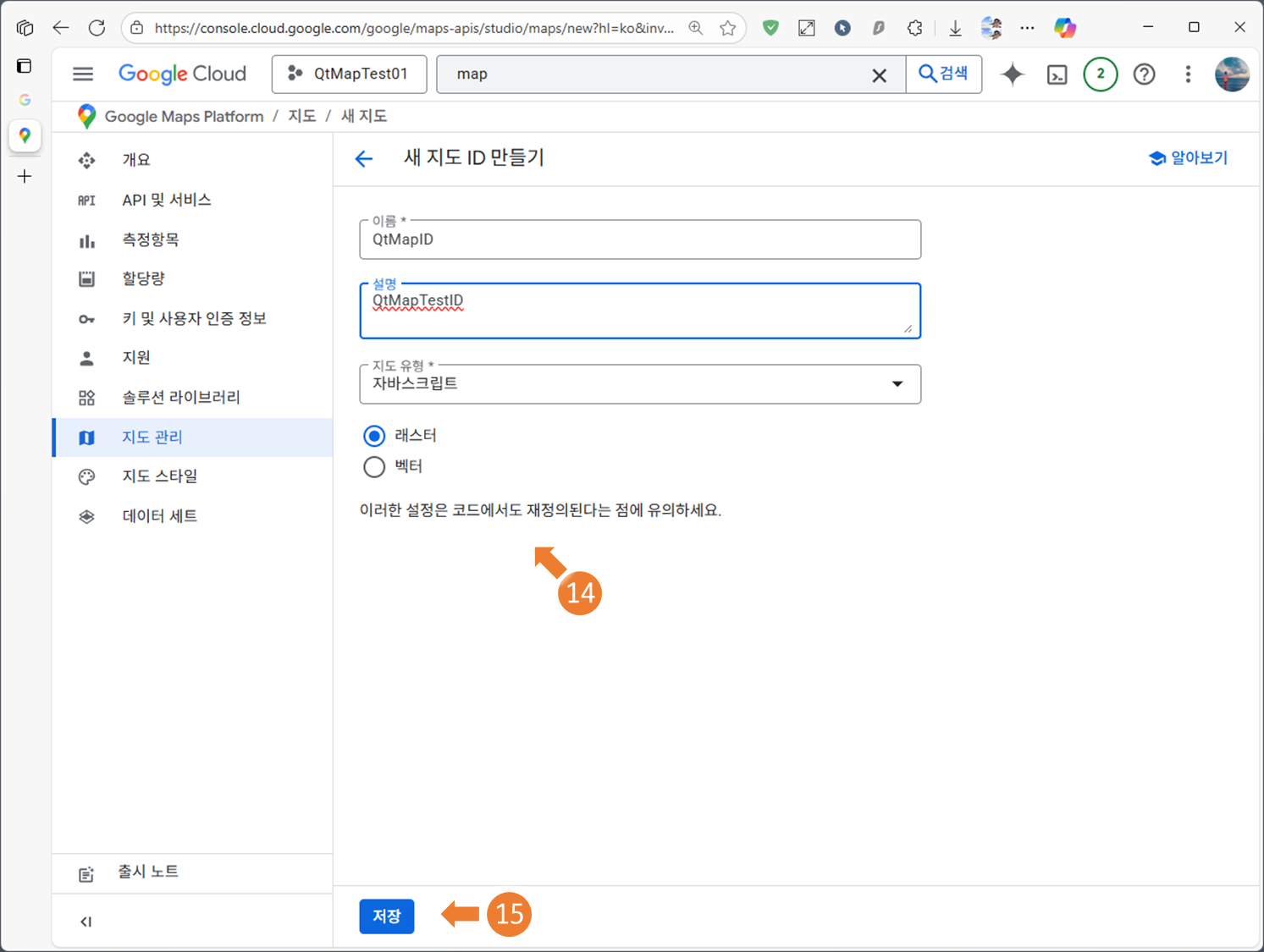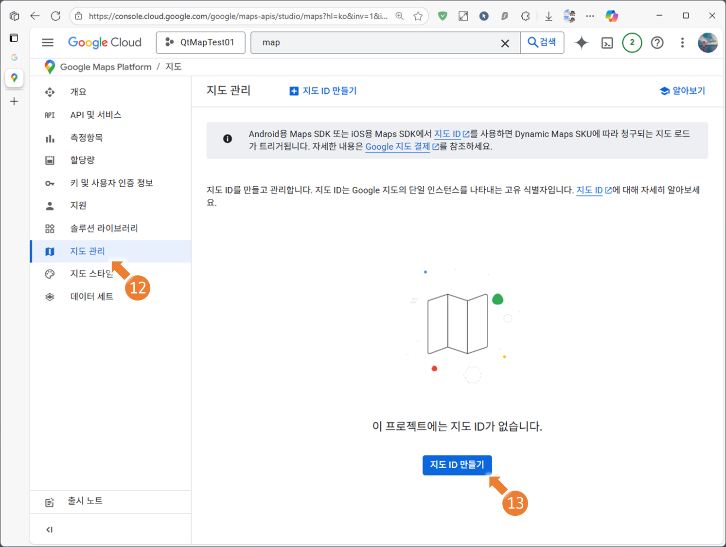 mapId: "본인의 Map ID를 입력하세요" // Google Cloud에서 만든 Web Map ID