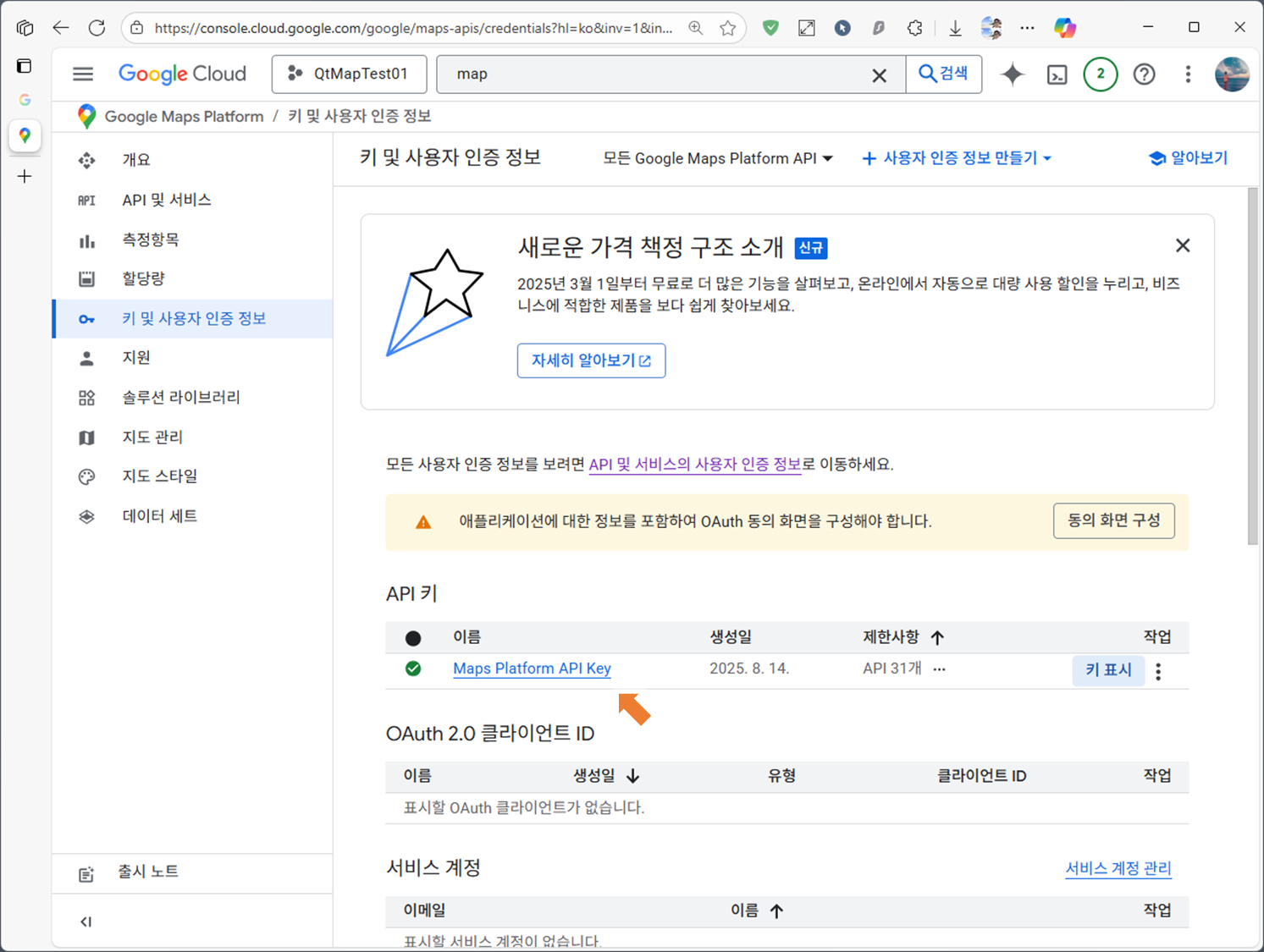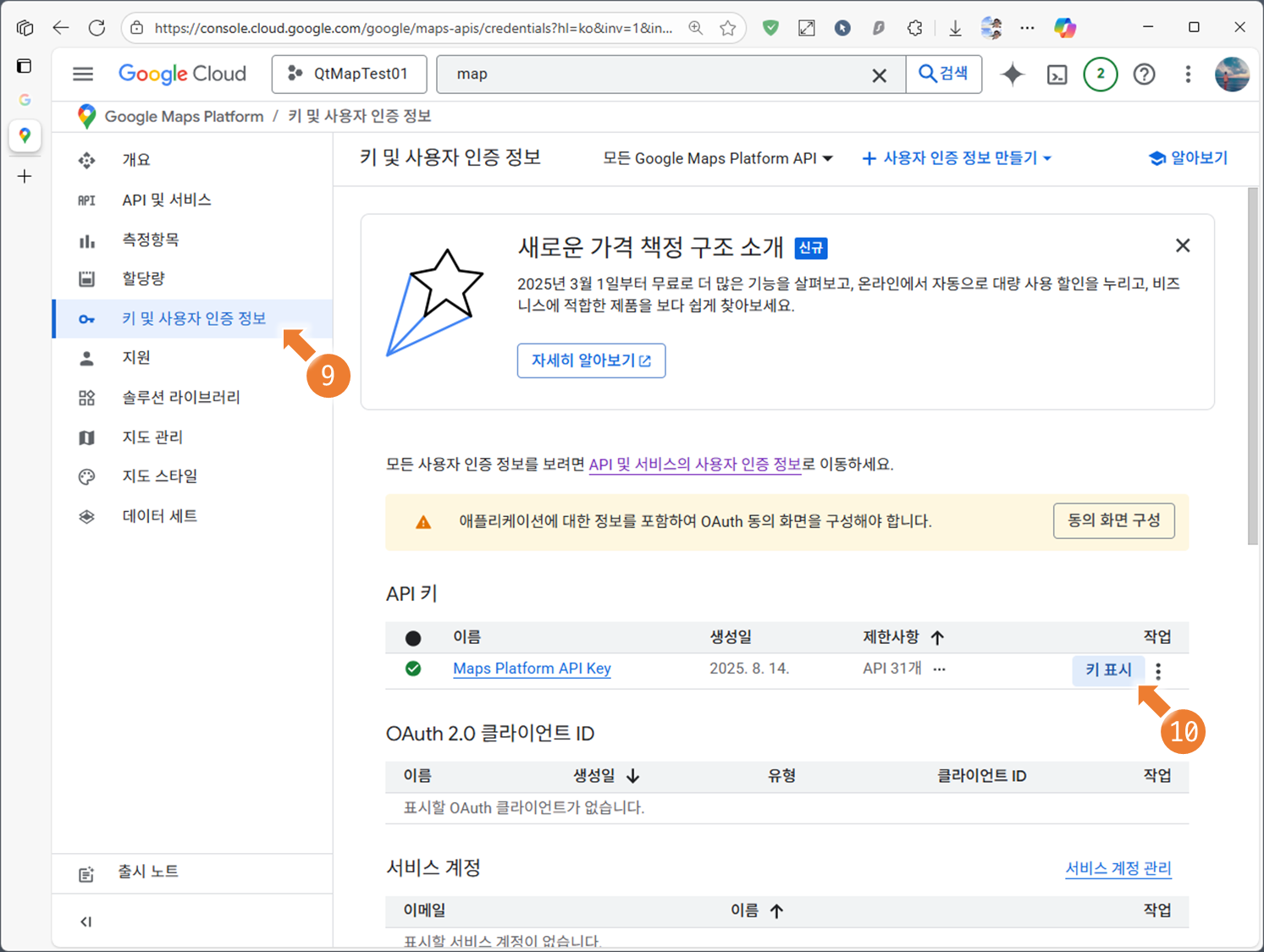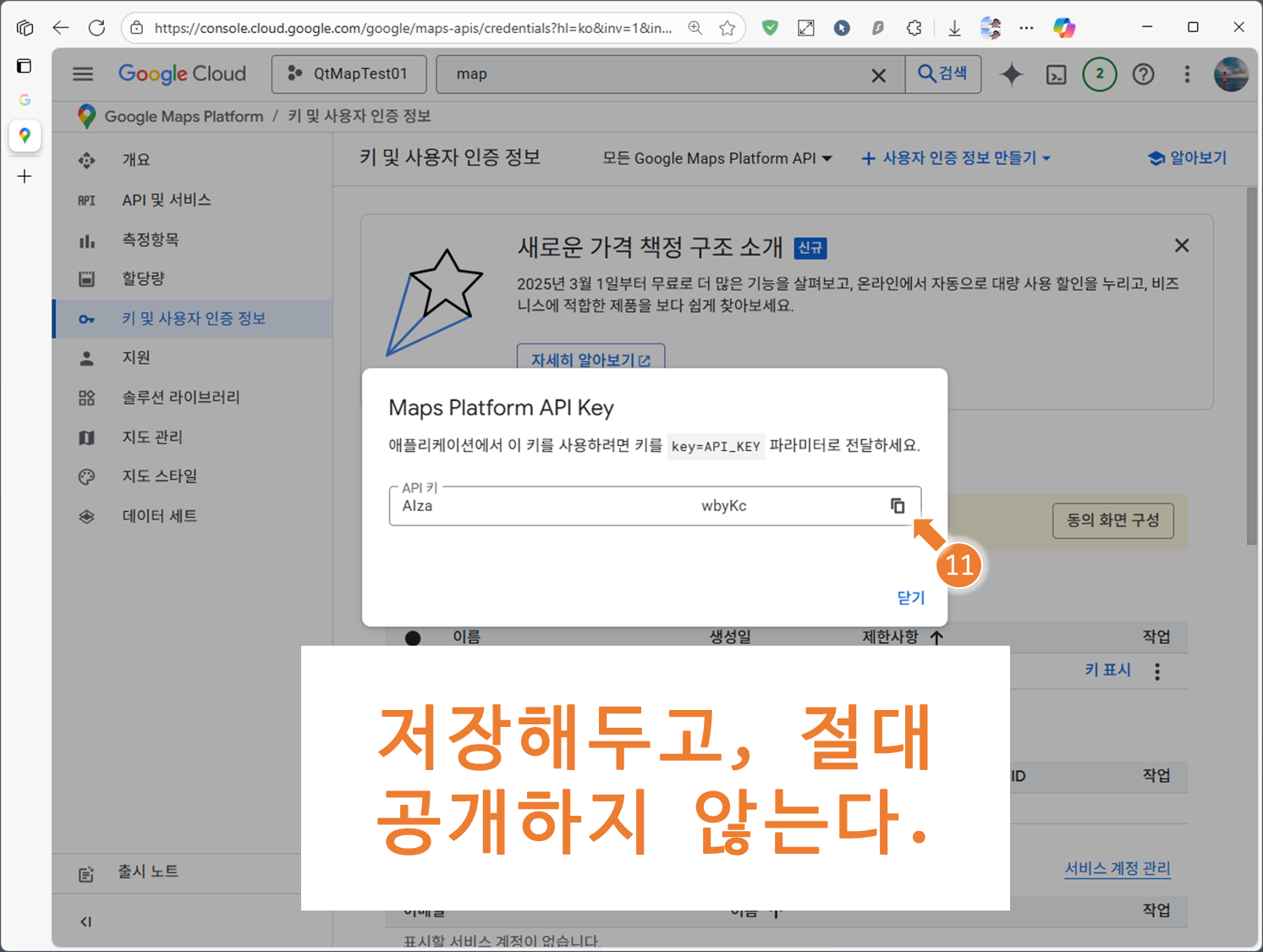 Qt 리소스 파일의 html 코드 내부에, API key, MapID 를 입력해야 합니다.
