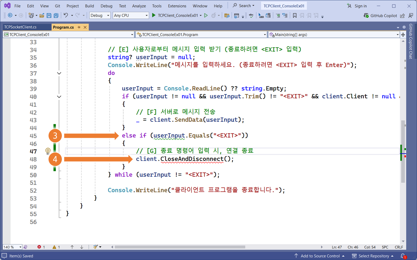24. TCPClient 클라이언트 4단계 2025.10.22 06:25 C# WPF/Network "TCPClient 클라이언트 4단계" 구현 목표 더보기 TCPClient_Console Step04.zip 0.25MB 연결 해제 구현하기 더보기 실행 테스트 더보기 공유하기 게시글 관리 BasicLike 댓글 공유하기 다른 글 댓글 이 글 공유하기 구독하기 구독하기 카카오톡 카카오톡 라인 라인 트위터 트위터 Facebook Facebook 카카오스토리 카카오스토리 밴드 밴드 네이버 블로그 네이버 블로그 Pocket Pocket Evernote Evernote 다른 글 32. 이벤트 기반 소켓 동작 2단계 32. 이벤트 기반 소켓 동작 2단계 2025.10.30 31. 이벤트 기반 소켓 동작 1단계 31. 이벤트 기반 소켓 동작 1단계 2025.10.22 23. TCPClient 클라이언트 3단계 23. TCPClient 클라이언트 3단계 2025.10.22 22. TCPClient 클라이언트 2단계 22. TCPClient 클라이언트 2단계 2025.10.21 다른 글 더 둘러보기