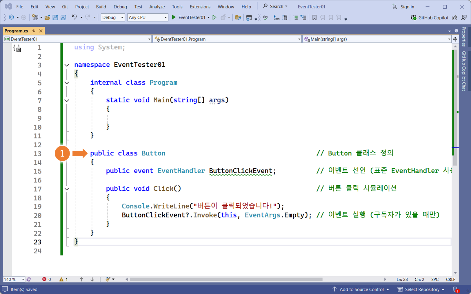 button.ButtonClickEvent += OnButtonClicked; // [2] 이벤트 구독
