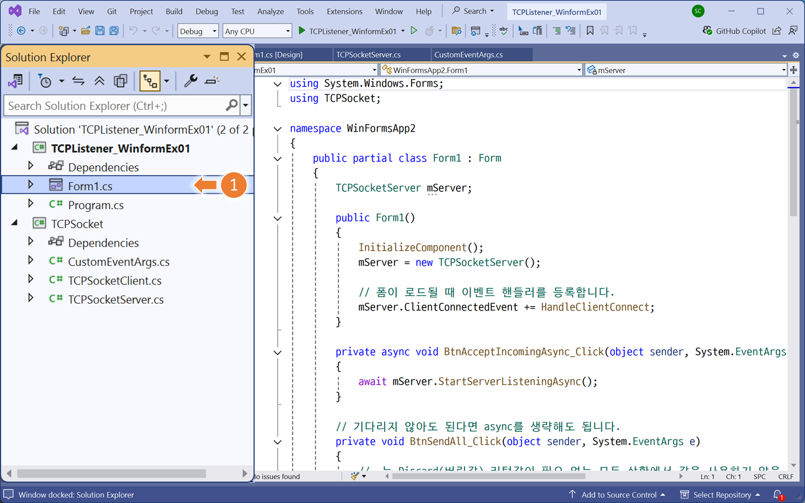 // [1] 텍스트 수신 이벤트