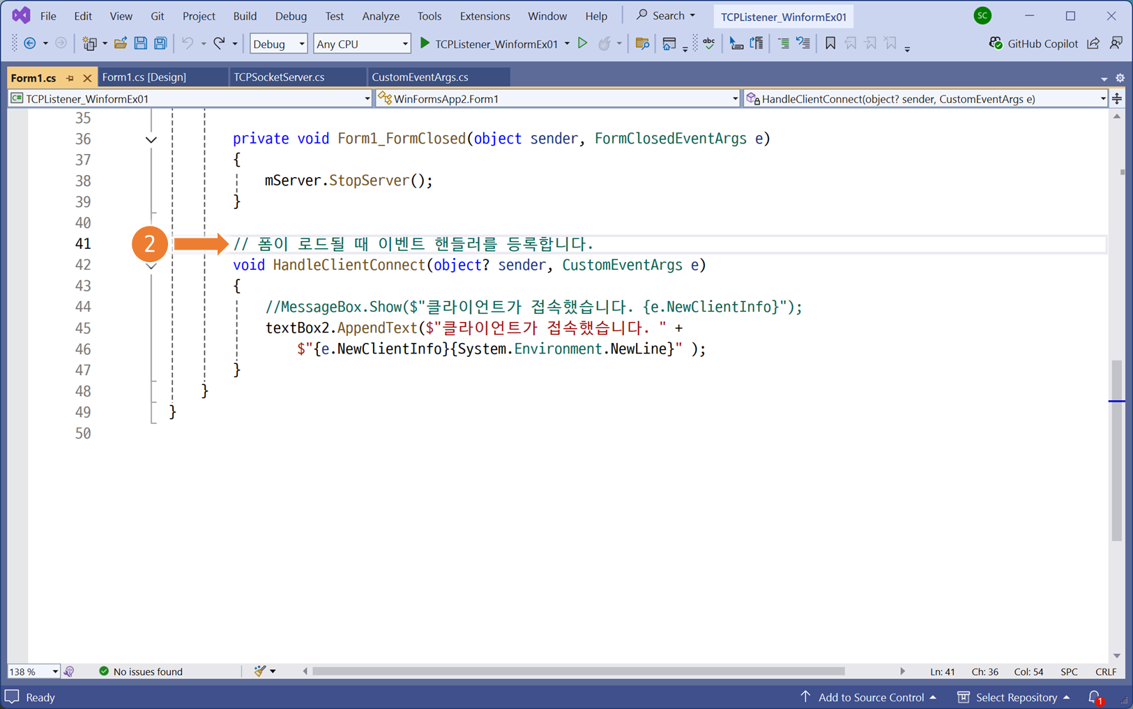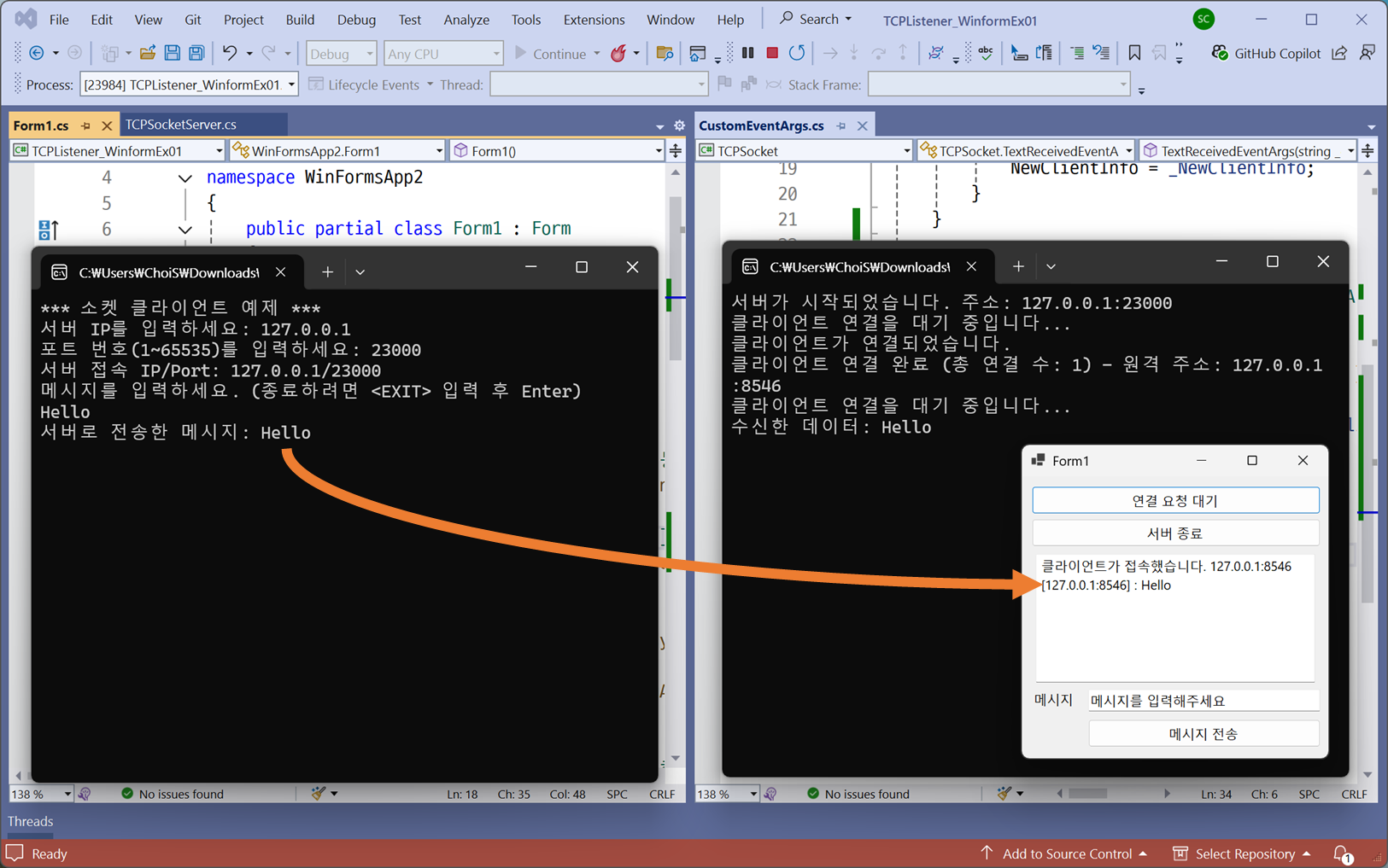 textBox2.AppendText($"클라이언트가 접속했습니다. " +