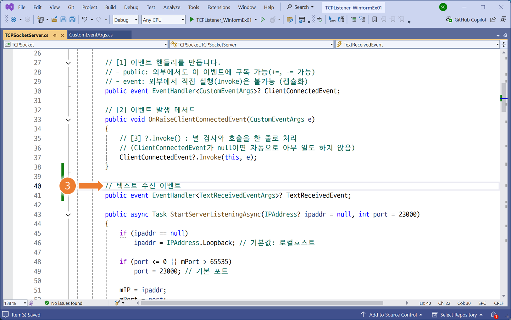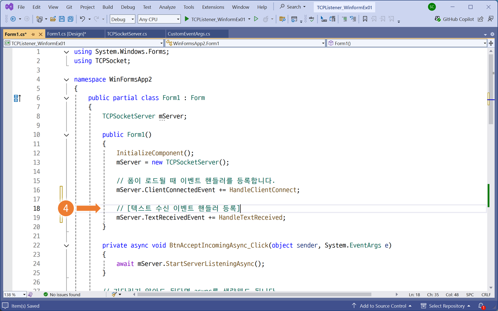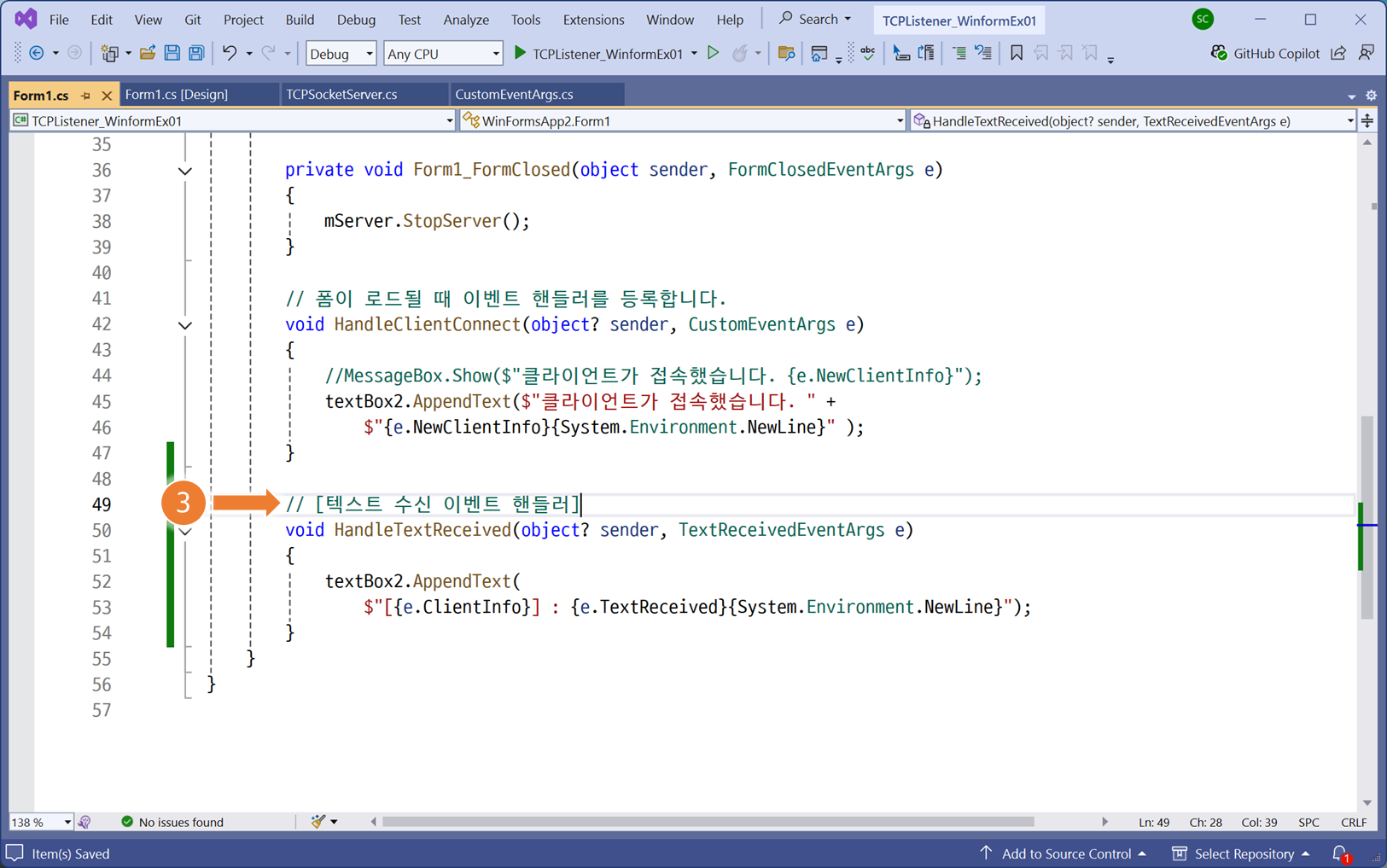 // [텍스트 수신 이벤트 핸들러 등록]