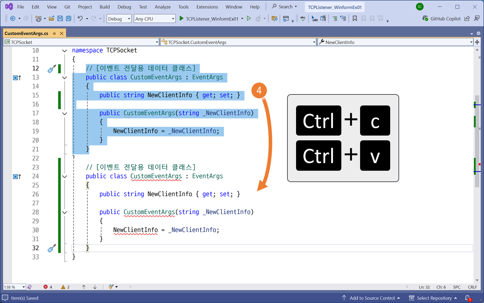 이벤트 전달용 <데이터 클래스> 자료형 구현