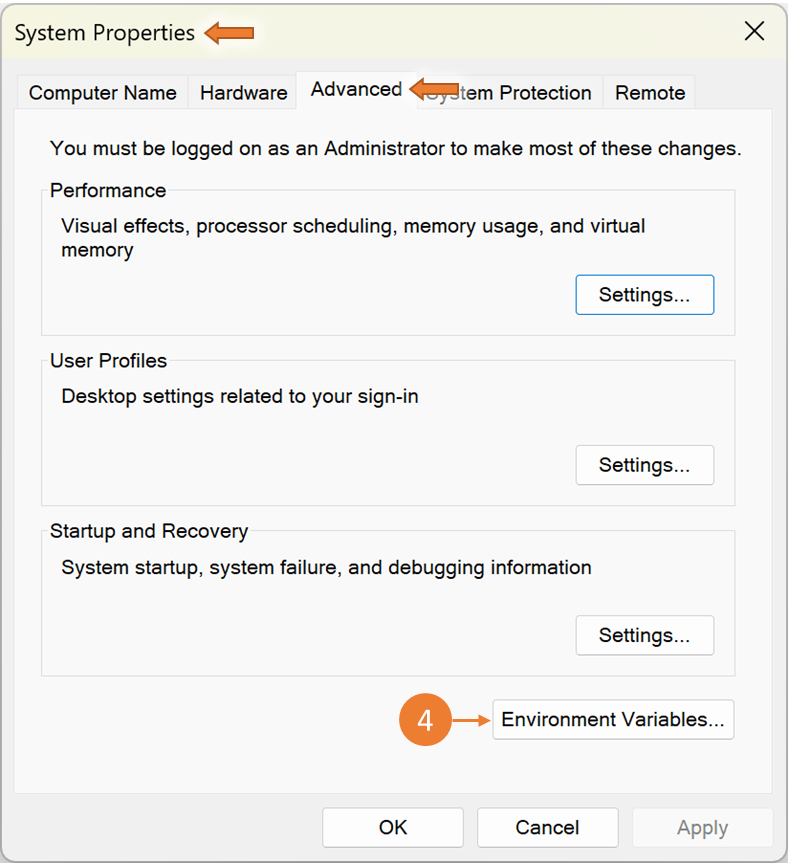 3. [시스템 속성] → [고급 탭] → [환경 변수] 로 이동