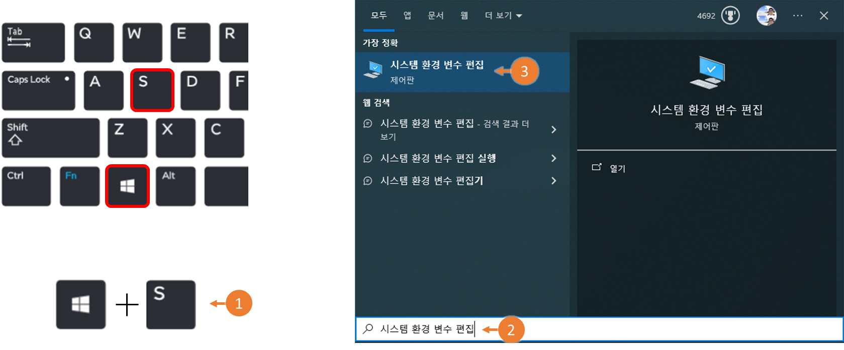 3. "시스템 환경 변수 편집" 이동