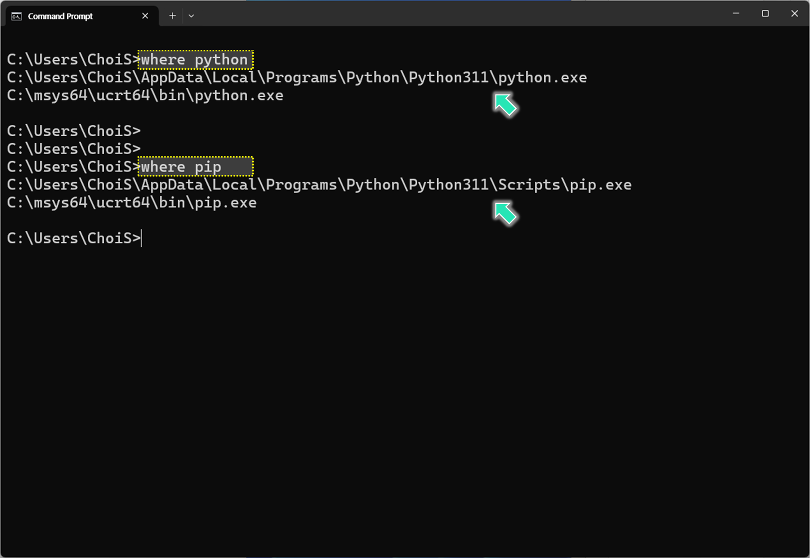 where python, python --version 명령어의 결과가 달라짐을 확인할 수 있습니다.