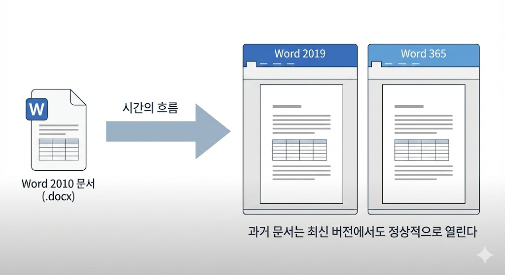 Word는 과거 문서를 계속 열 수 있도록 하위 호환성을 유지합니다.