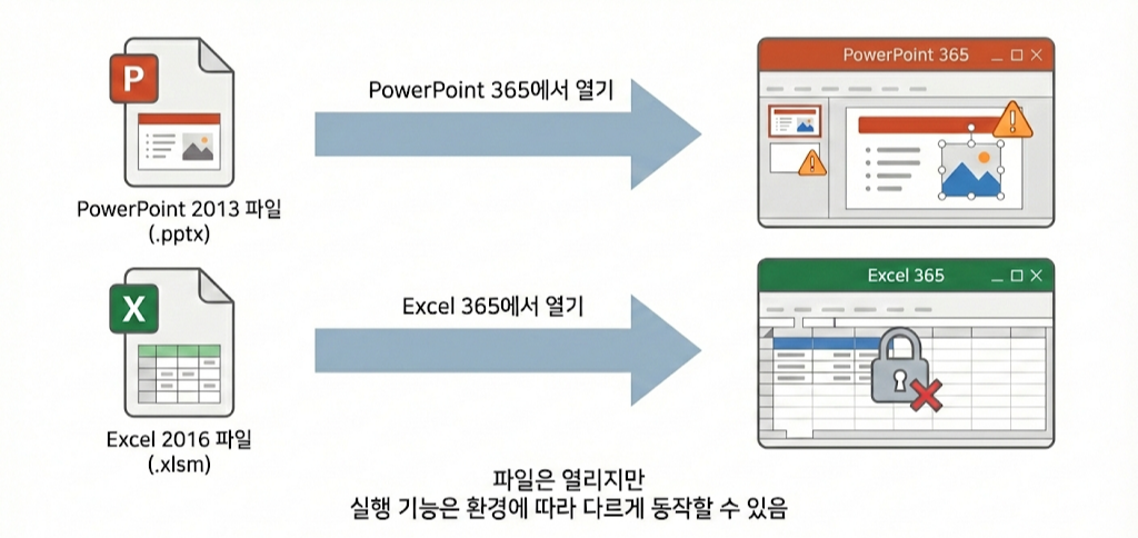 Excel 2016에서 만든 .xlsm 파일을 Excel 365에서 열면?