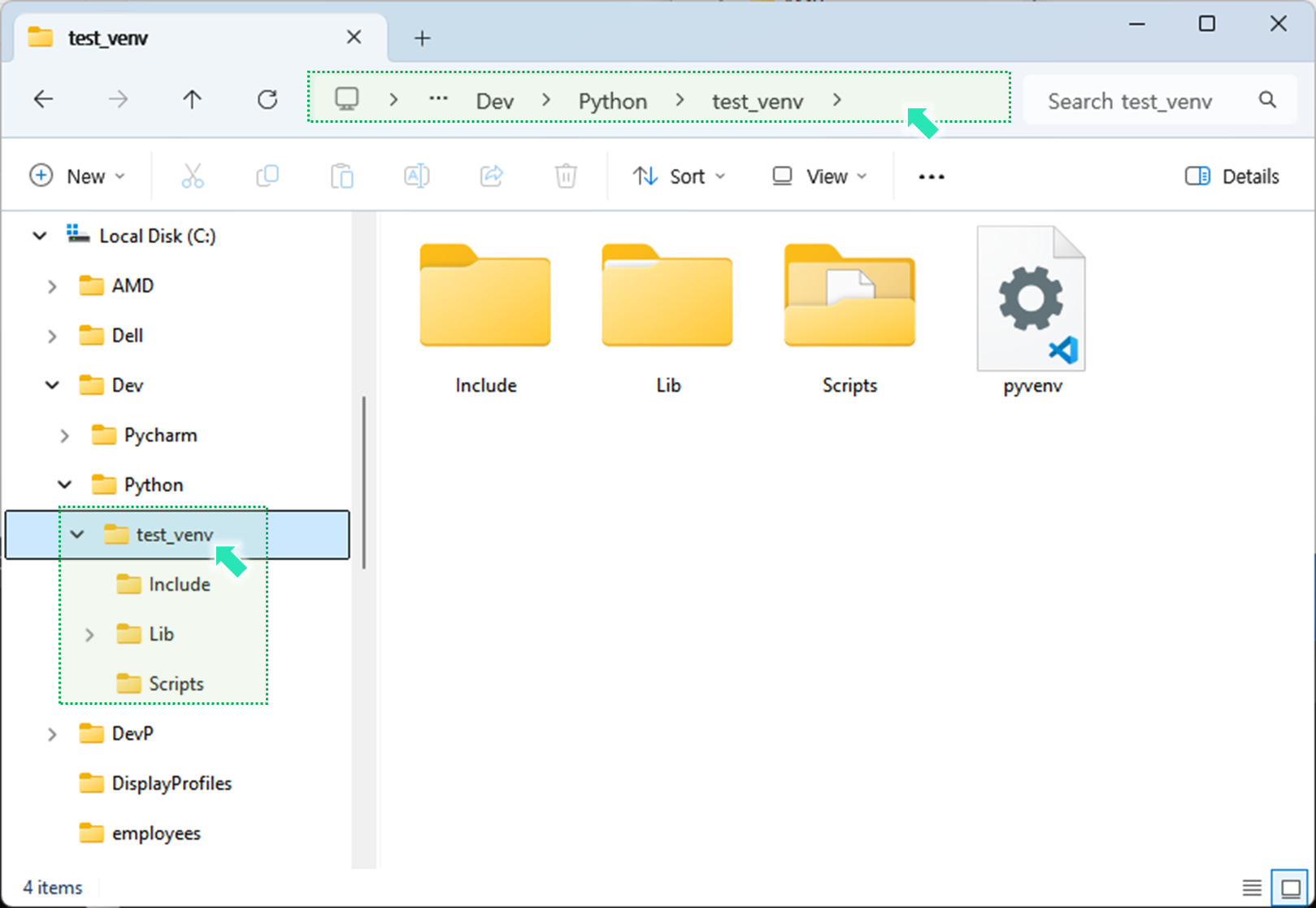 패키지는 가상환경 test_venv의 site-packages에만 설치