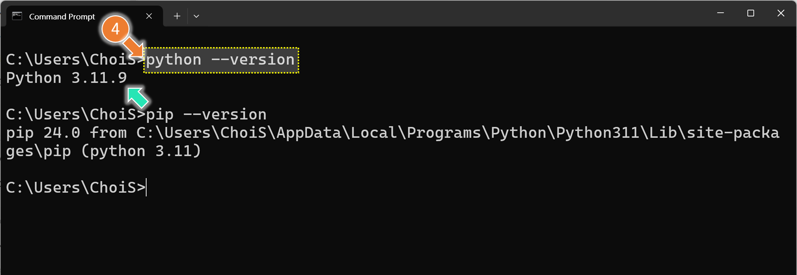 | 전역 pip | C:\Users\사용자명\AppData\Local\Programs\Python\Python311\Scripts\pip.exe |