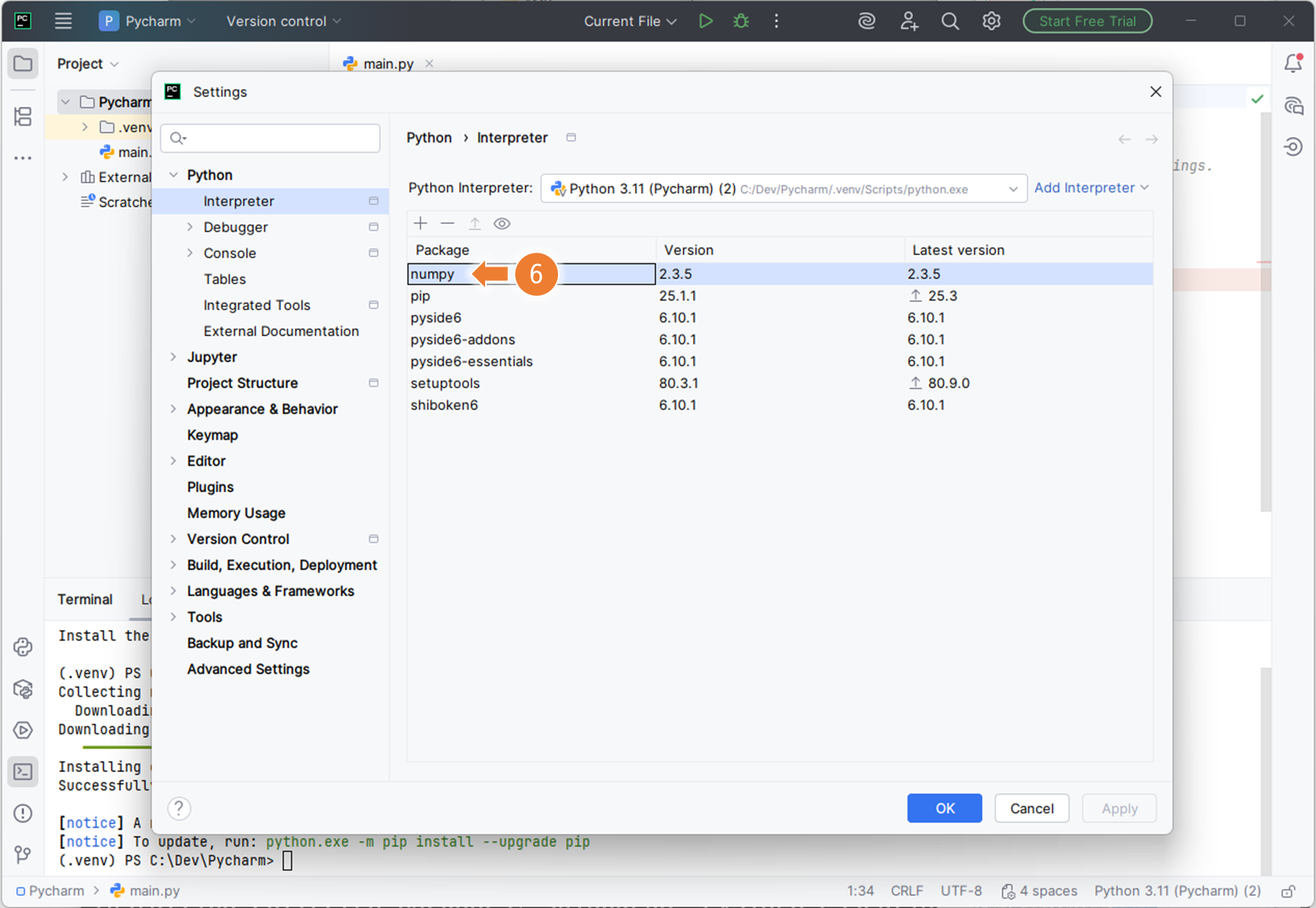 파이참에서 라이브러리 설치하기 2025.11.25 01:19 Python Qt PySide6/Setup 1. 파이참 UI 에서 라이브러리 설치 : 가상환경과 패키지 설치 경로 확인하기 더보기 설치 확인(1) 설치 확인(2) pip list 설치 확인(3) 라이브러리가 설치된 가상환경의 위치 확인하기 2. 파이참 콘솔에서 라이브러리 설치 : 가상환경과 패키지 설치 경로 확인하기 더보기 방법1) 방법2) 라이브러리가 설치된 가상환경의 위치 확인하기 공유하기 게시글 관리 BasicLike 댓글 공유하기 다른 글 댓글 이 글 공유하기 구독하기 구독하기 카카오톡 카카오톡 라인 라인 트위터 트위터 Facebook Facebook 카카오스토리 카카오스토리 밴드 밴드 네이버 블로그 네이버 블로그 Pocket Pocket Evernote Evernote 다른 글 파이참 시작 파일 설정 파이참 시작 파일 설정 2025.12.05 Pycharm /w GitHub Pycharm /w GitHub 2025.12.03 파이참에서 프로젝트 생성하기 파이참에서 프로젝트 생성하기 2025.11.24 파이썬에서 라이브러리 설치하기 파이썬에서 라이브러리 설치하기 2025.11.21 다른 글 더 둘러보기