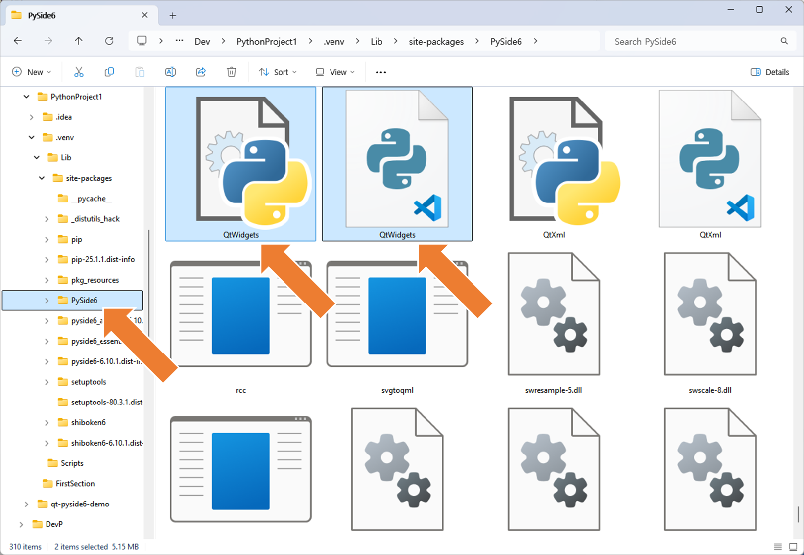 .venv\Lib\site-packages\PySide6\QtWidgets\ 에 있는 파일들은 대부분 “컴파일된 바이너리(.pyd)”이고,