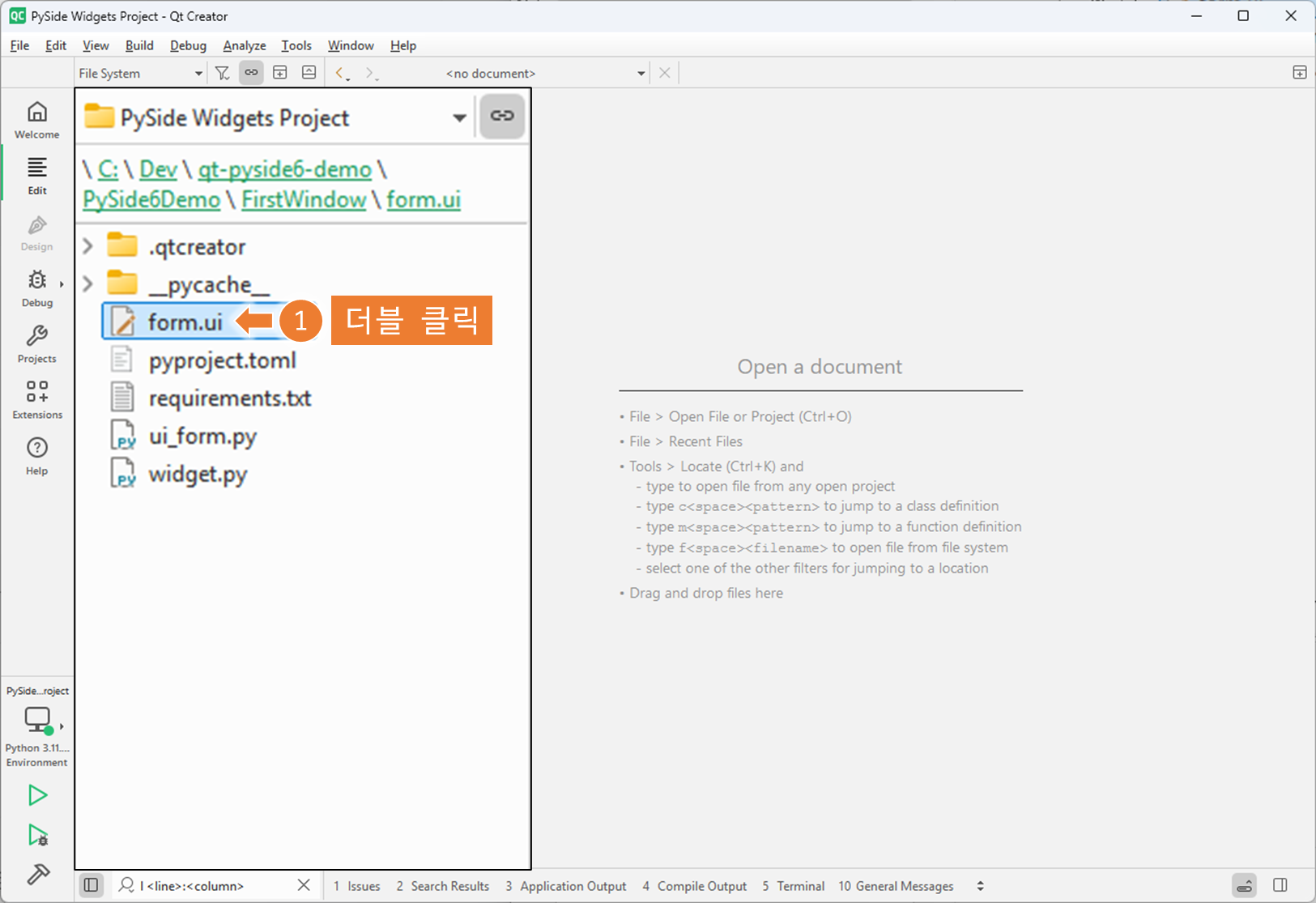 1. Qt for Python 템플릿으로 프로젝트 생성더보기 2. 실행 테스트더보기