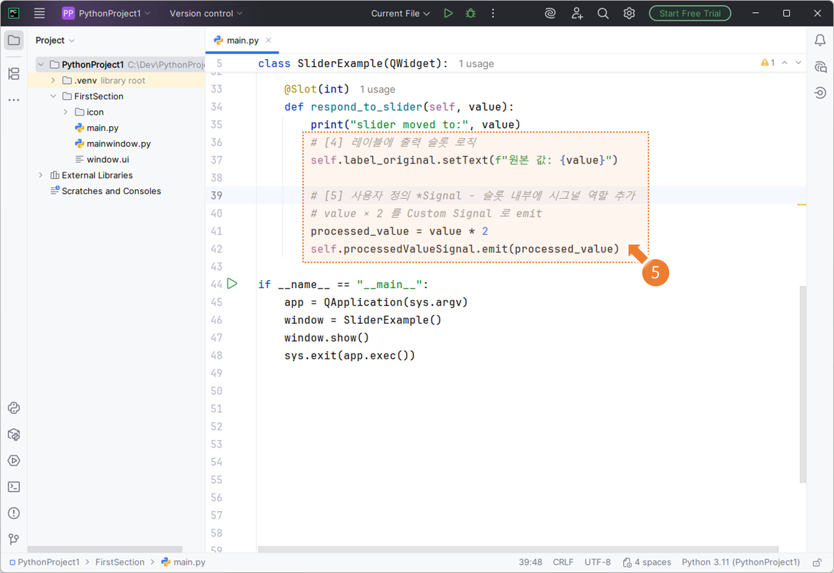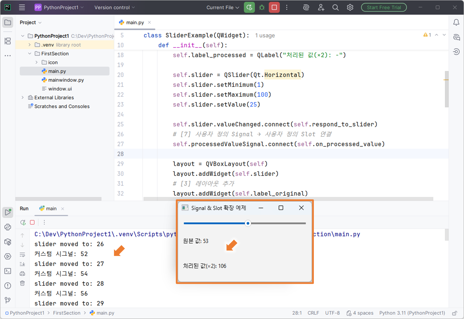 # [1] 사용자 정의 Signal: 처리된 값을 전달하고 싶을 때 사용
