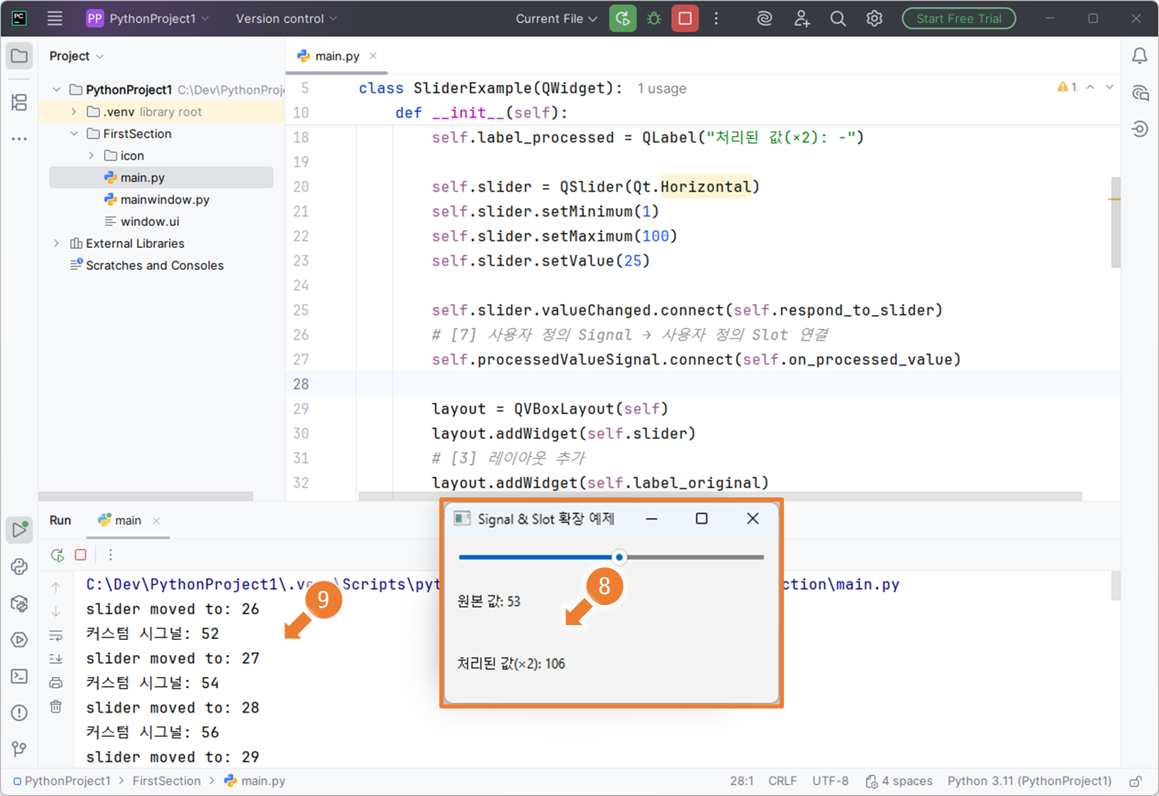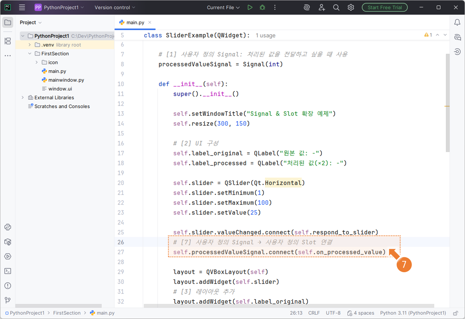 # [7] 사용자 정의 Signal → 사용자 정의 Slot 연결