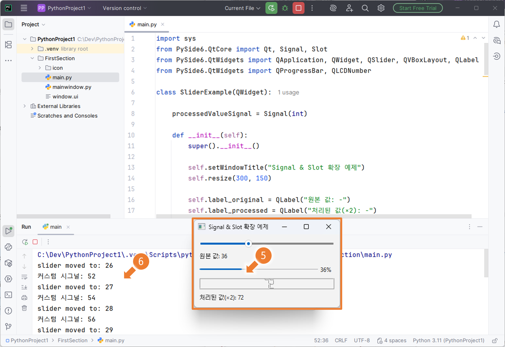 # [5] 사용자 정의 Signal → 여러 Slot 연결