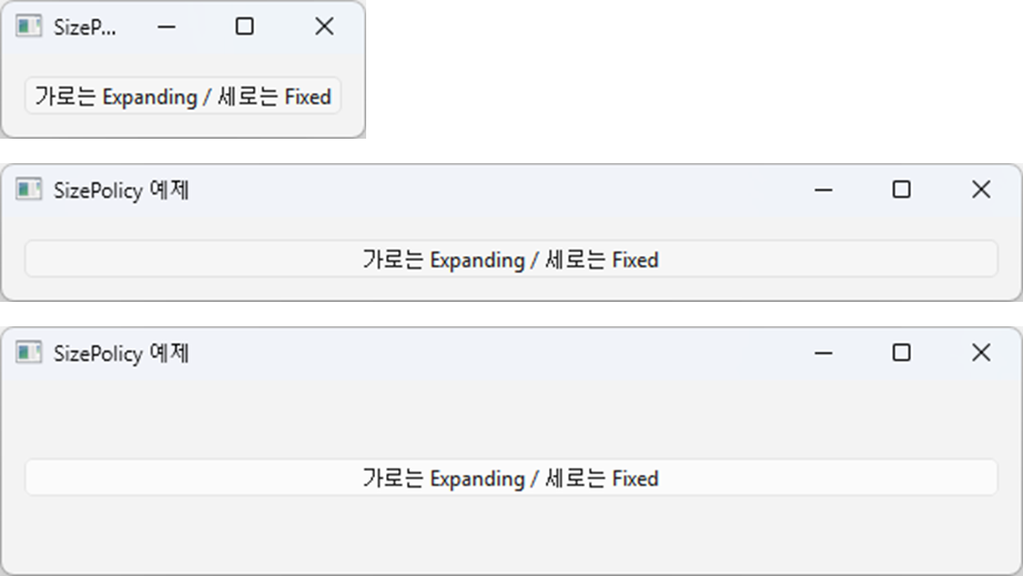 btn = QPushButton("가로는 Expanding / 세로는 Fixed")