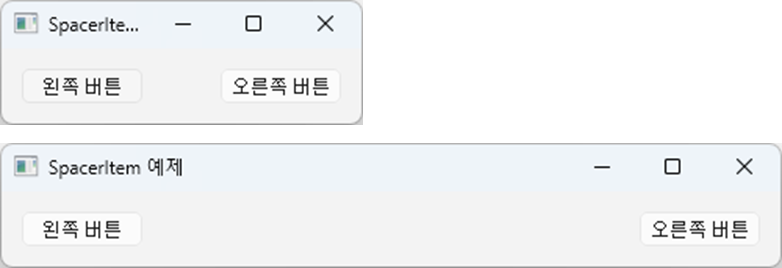 QSpacerItem도 사실상 SizePolicy를 가진 하나의 “보이지 않는 위젯”처럼 행동한다